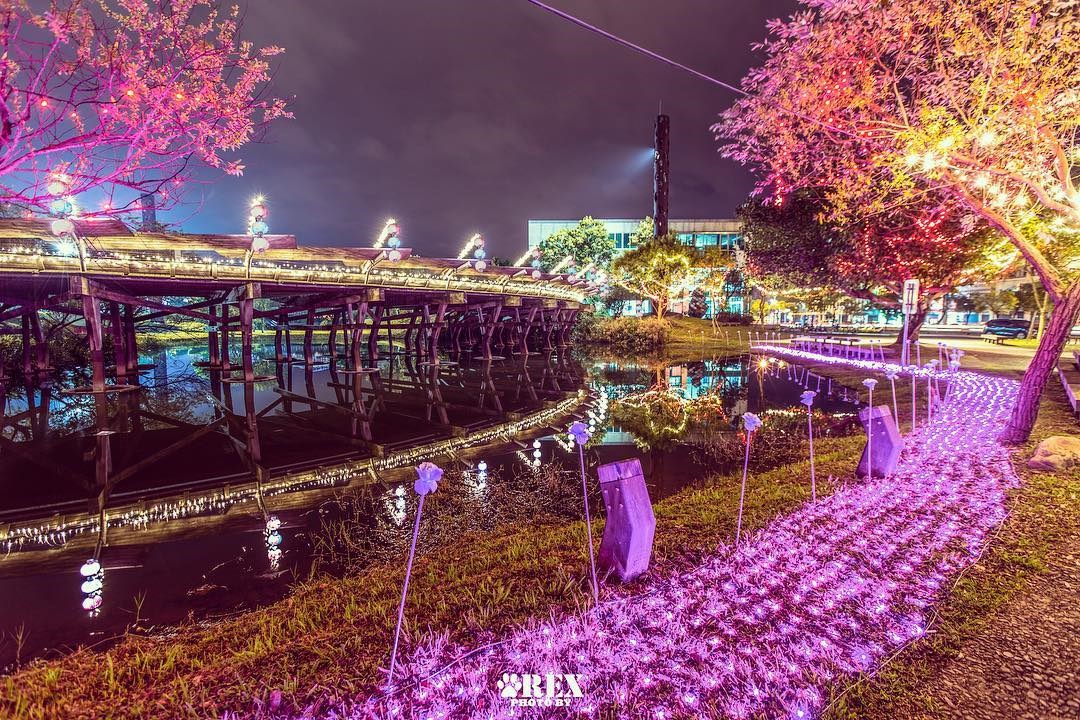 農曆春節雖然已過,但園區裡的燈飾依舊閃閃發亮,今年的主燈飾以「星想事成·光之六芒」為主題,走進六角星造型燈廊,就像進入了忽明忽暗的星光隧道,浪漫指數百分百,而園區裡也是一片星海景象,繽紛燈飾妝點得格外美麗。