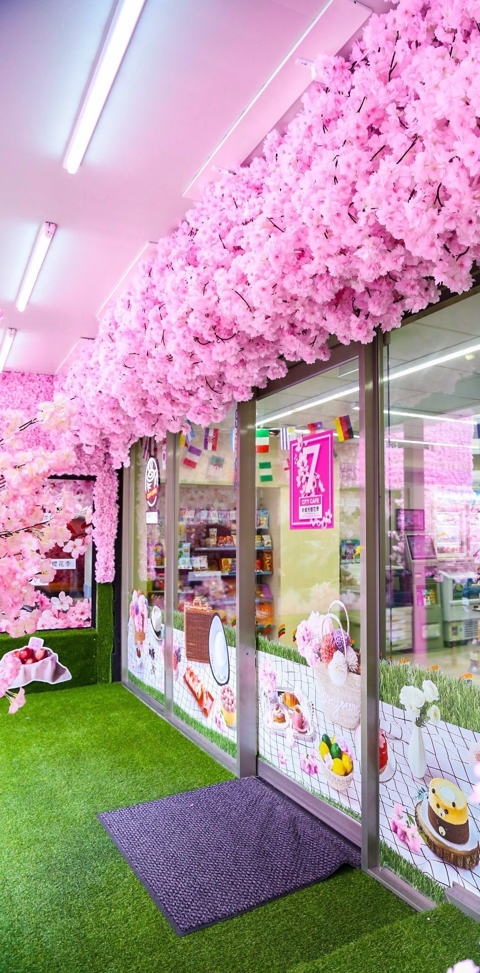 ▲配合城市櫻花季,打造出夢幻粉色櫻花門市 (7-11誠安門市)