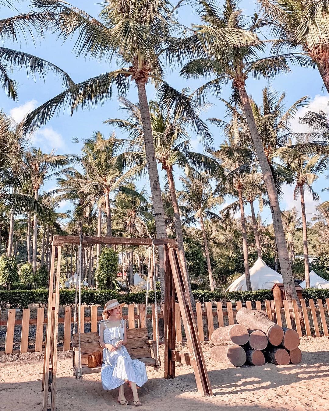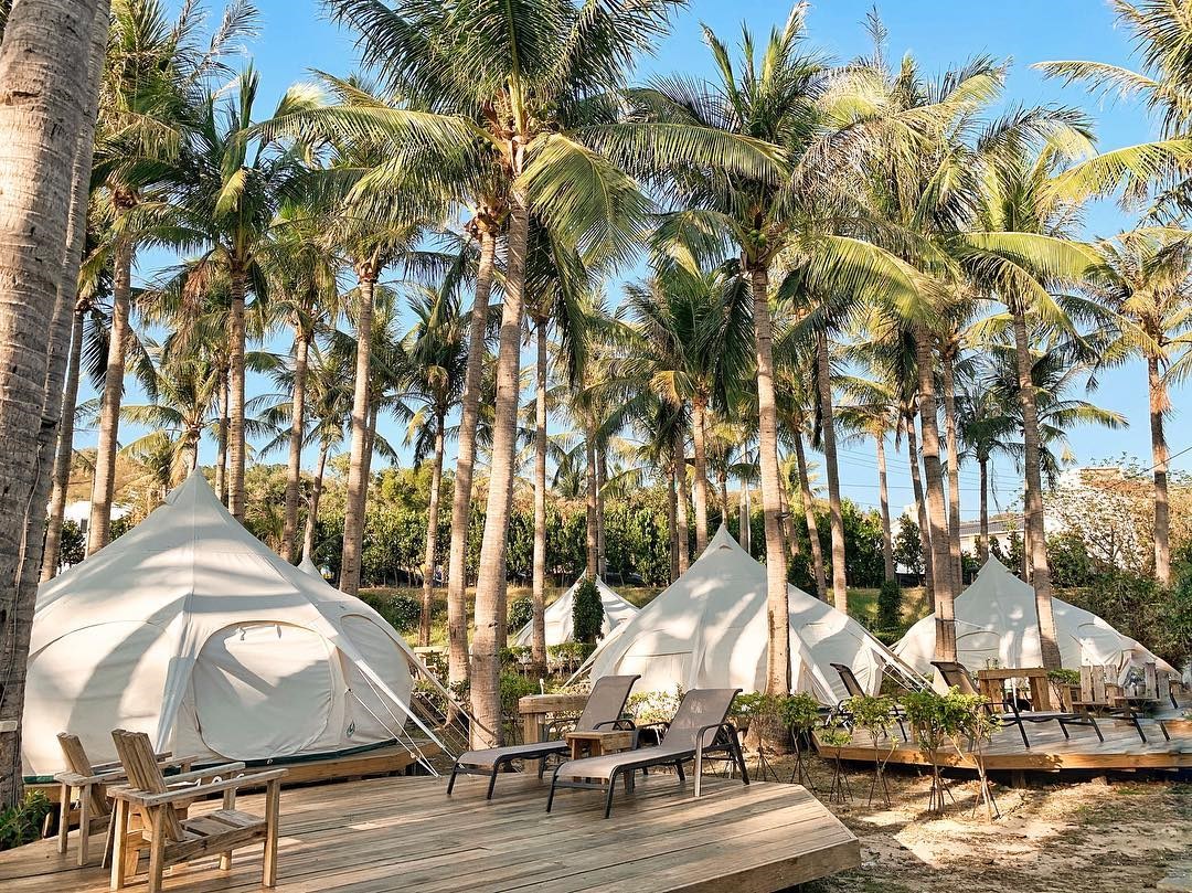 ▲在密佈的綠色椰子樹下露營,有種置身在異國渡假的味道