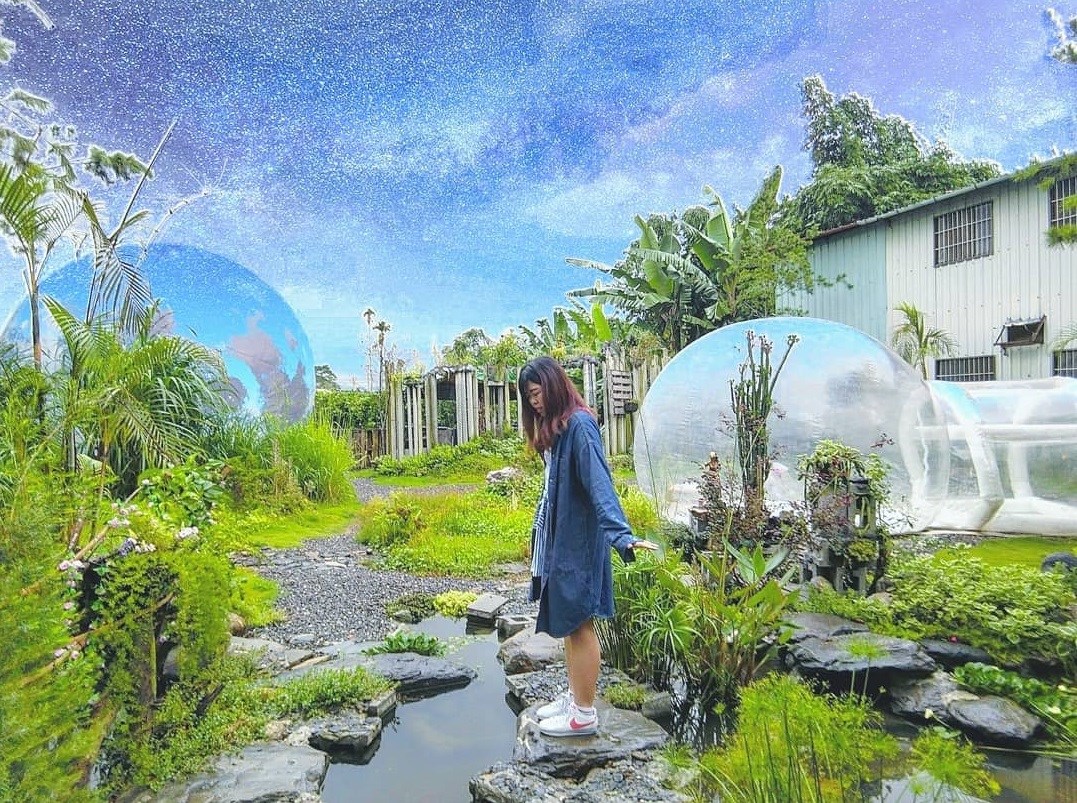 有著夢幻透明泡泡屋與星球圖案的大型氣球,南投埔里這間「多肉秘境」佈置的就像是坐小天地,綠色植栽與生態池將庭院點綴成夢幻天地,還能DIY做出屬於自己的多肉植物盆栽!