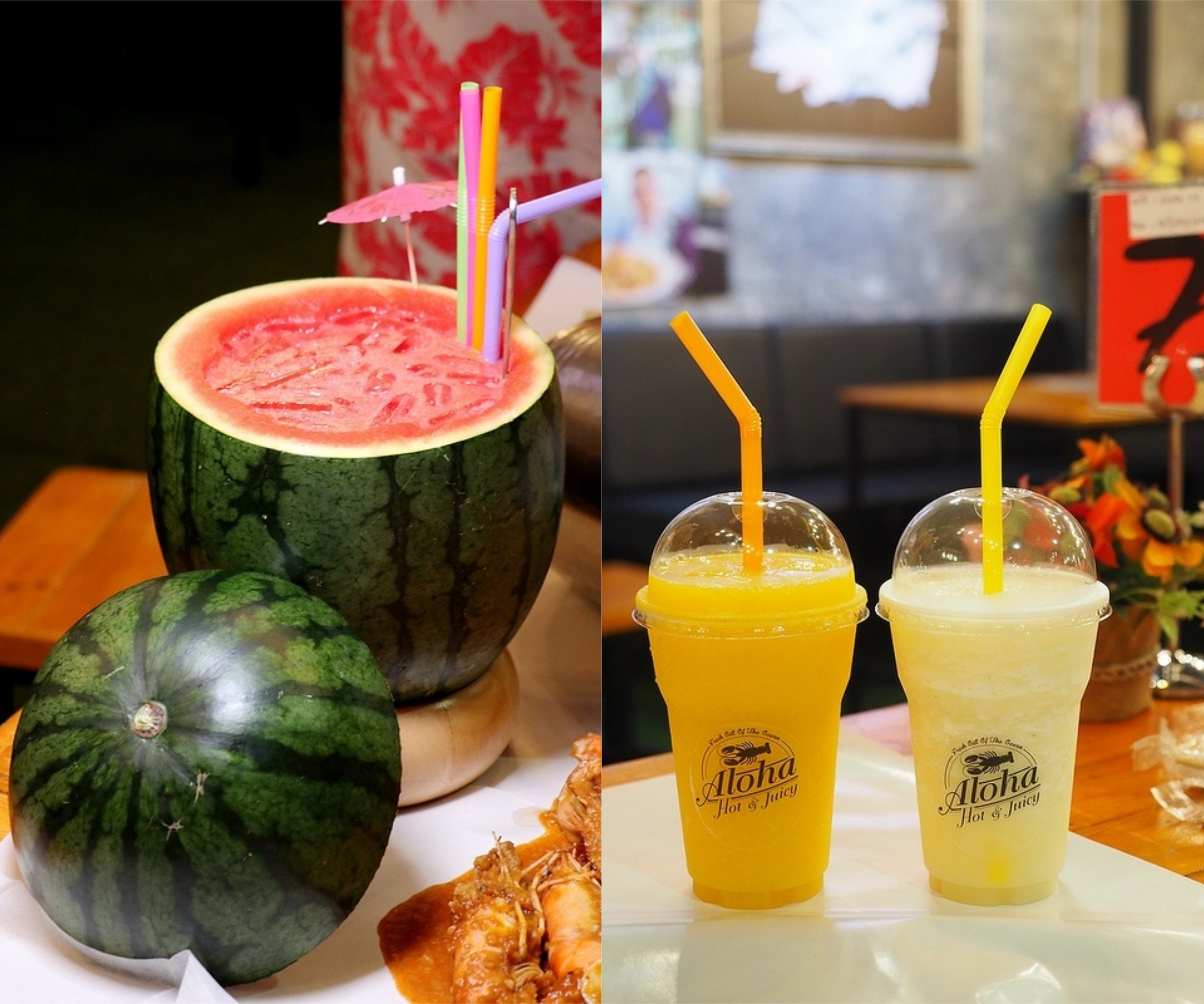 主打手抓海鮮搭配其他經典泰國菜以及整顆新鮮西瓜現打果汁
