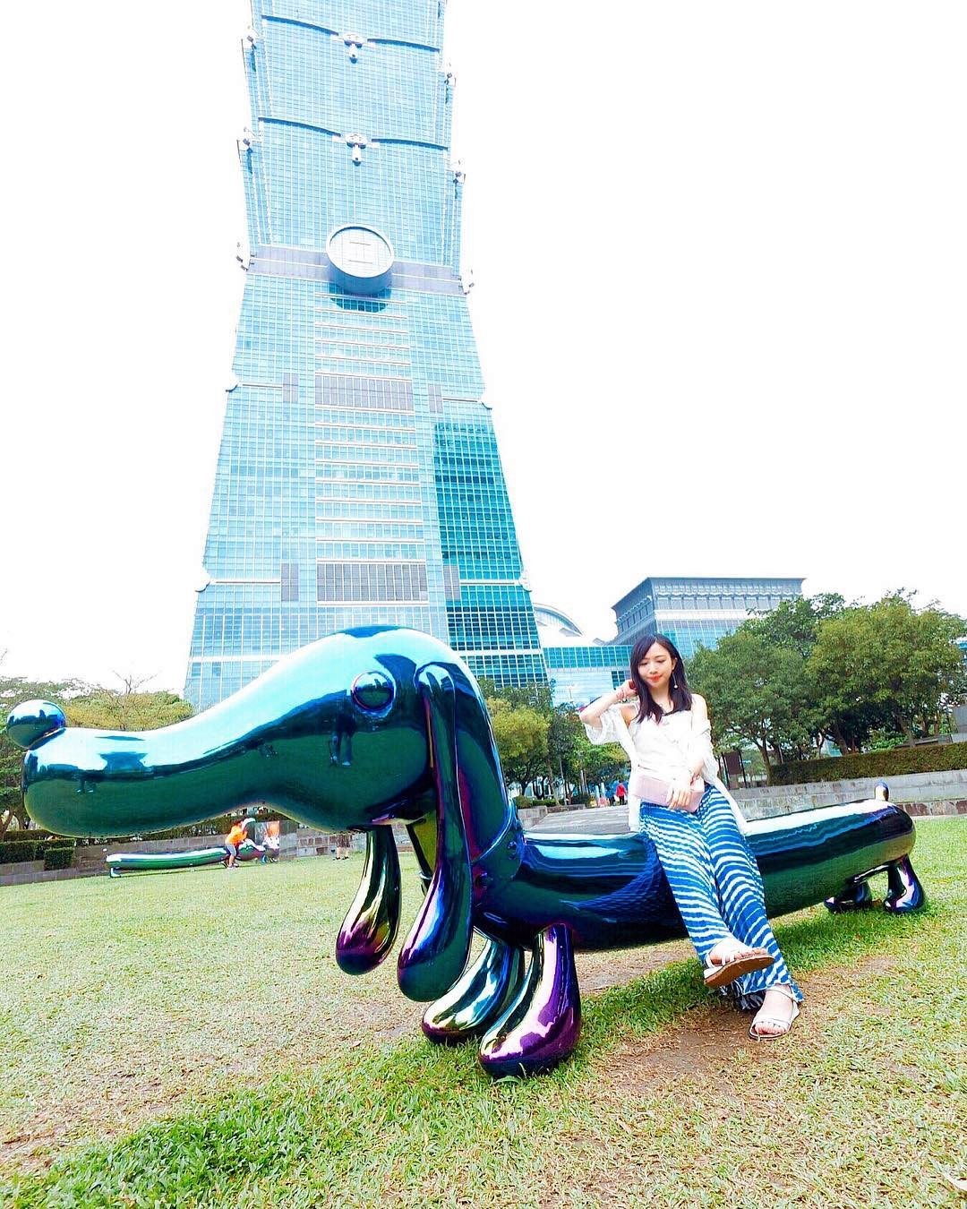 ▲染上金屬光澤的「拉長狗」坐落在信義廣場,散發迷人金屬光澤,童趣帶有酷炫的視覺效果