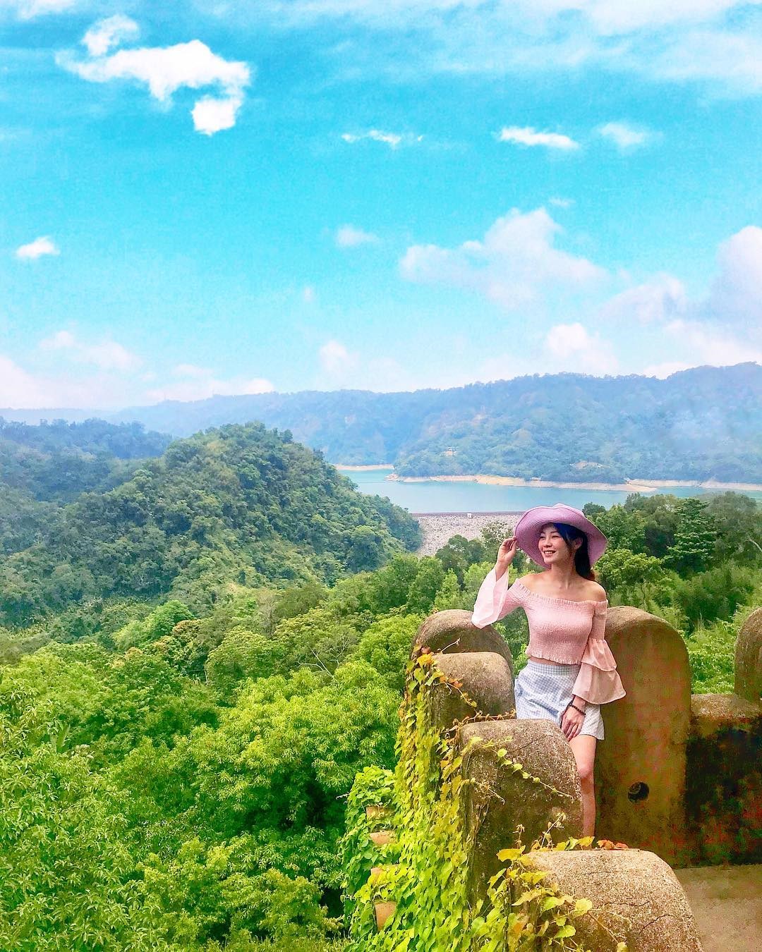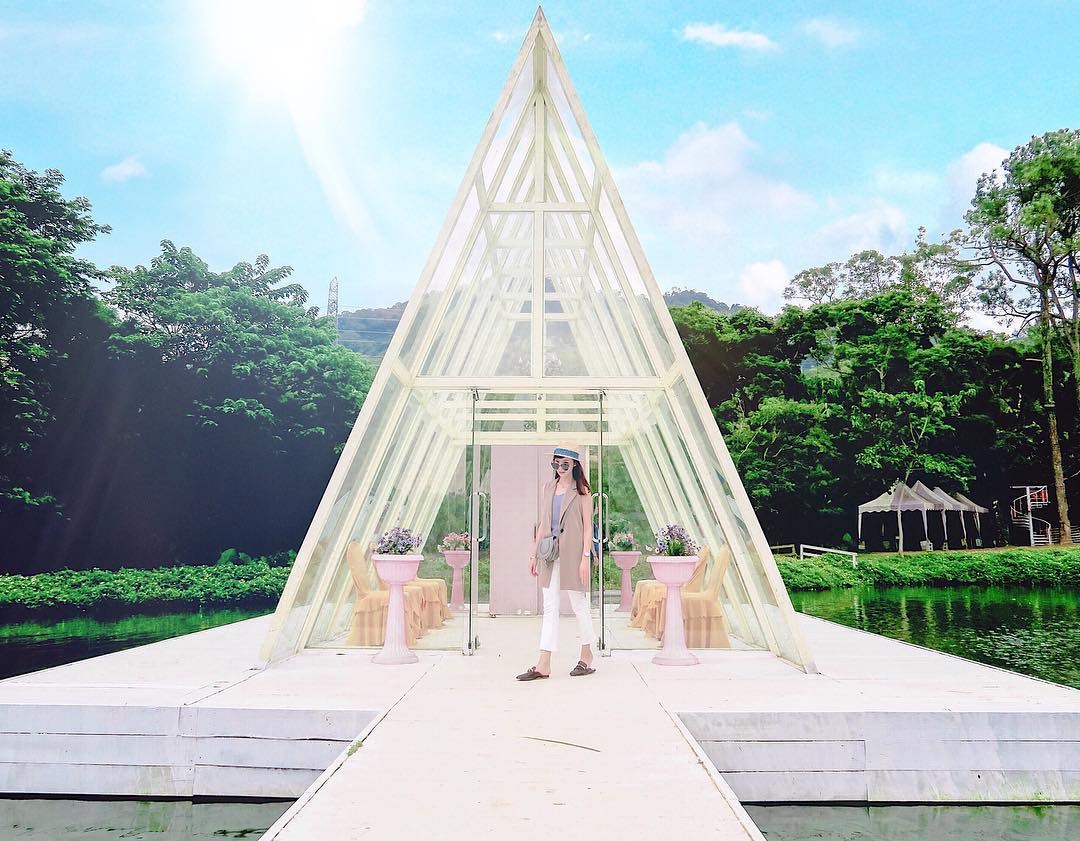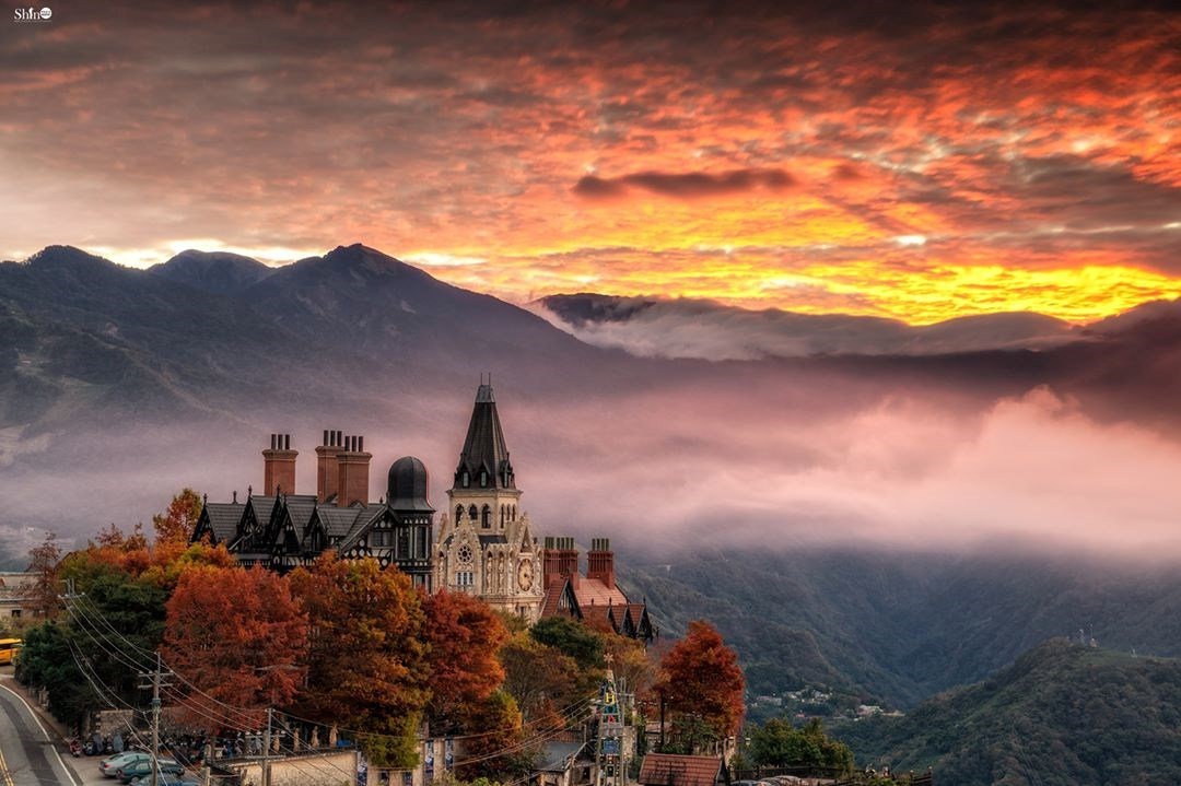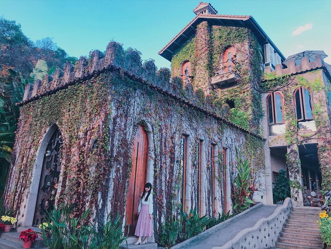 位於苗栗的天空之城,佔地遼闊的園區坐落在群山中,一旁就是鯉魚潭,山水的風光景色盡收眼底;古堡式的建築外牆被綠葉藤蔓纏繞,與一旁的森林相伴著,像是童話故事裡的場景,十分夢幻。