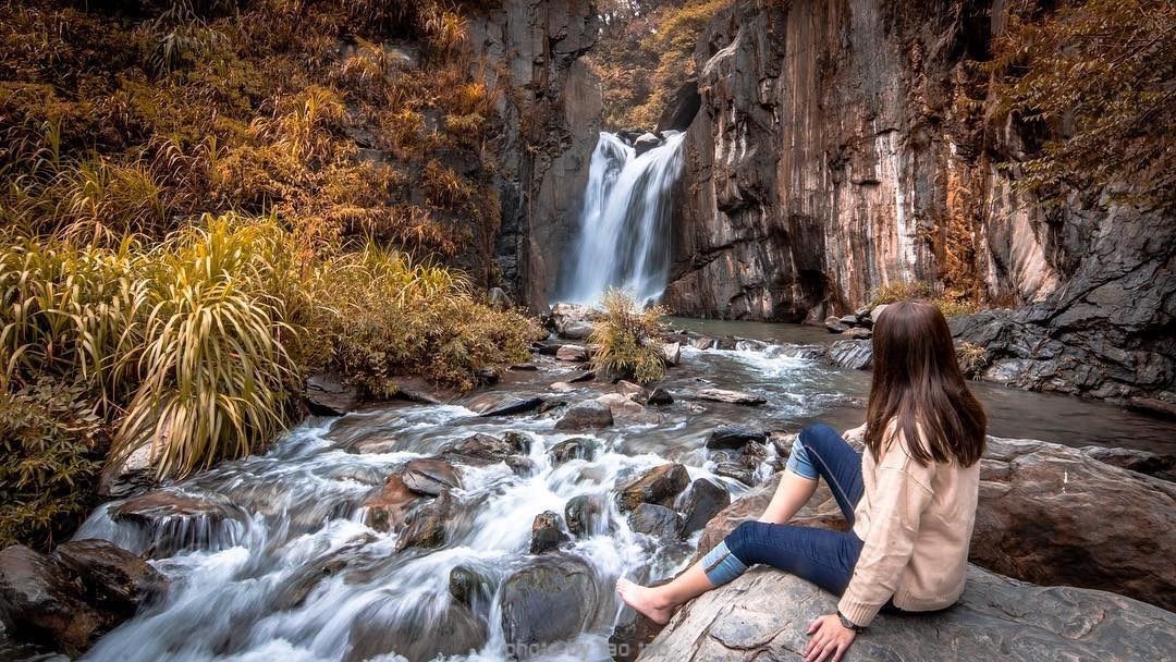 ▲有如琉璃般清澈的瀑布傾瀉而下,形成在地人最愛的天然SPA