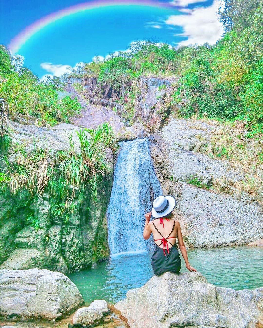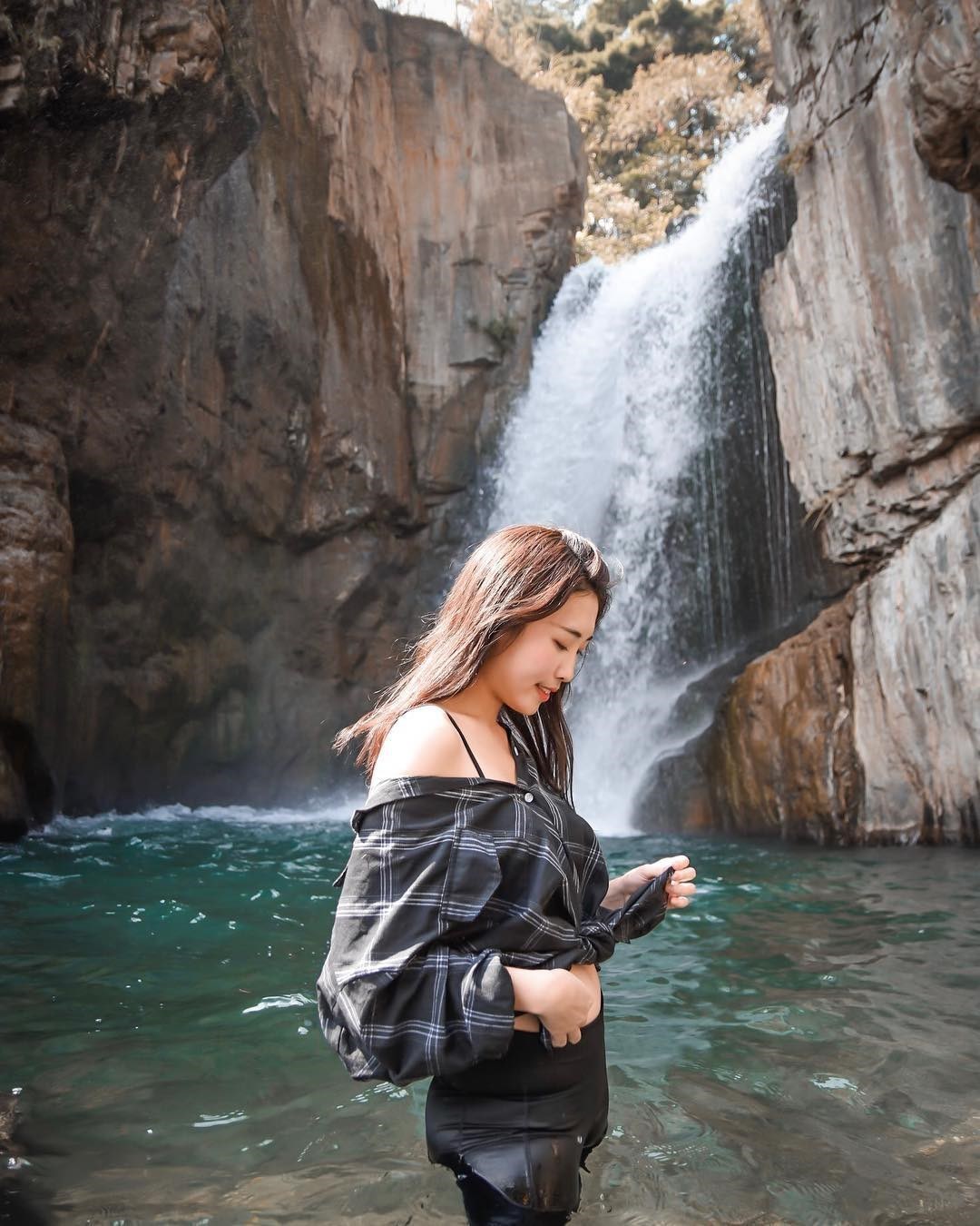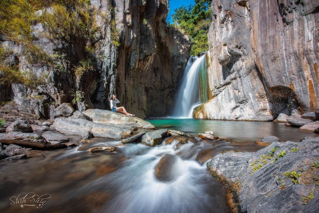 ※在岩石上與上游的溪水合影是猴洞坑瀑布最受歡迎的地方,但要注意岩石濕滑,容易造成不平衡,小心安全