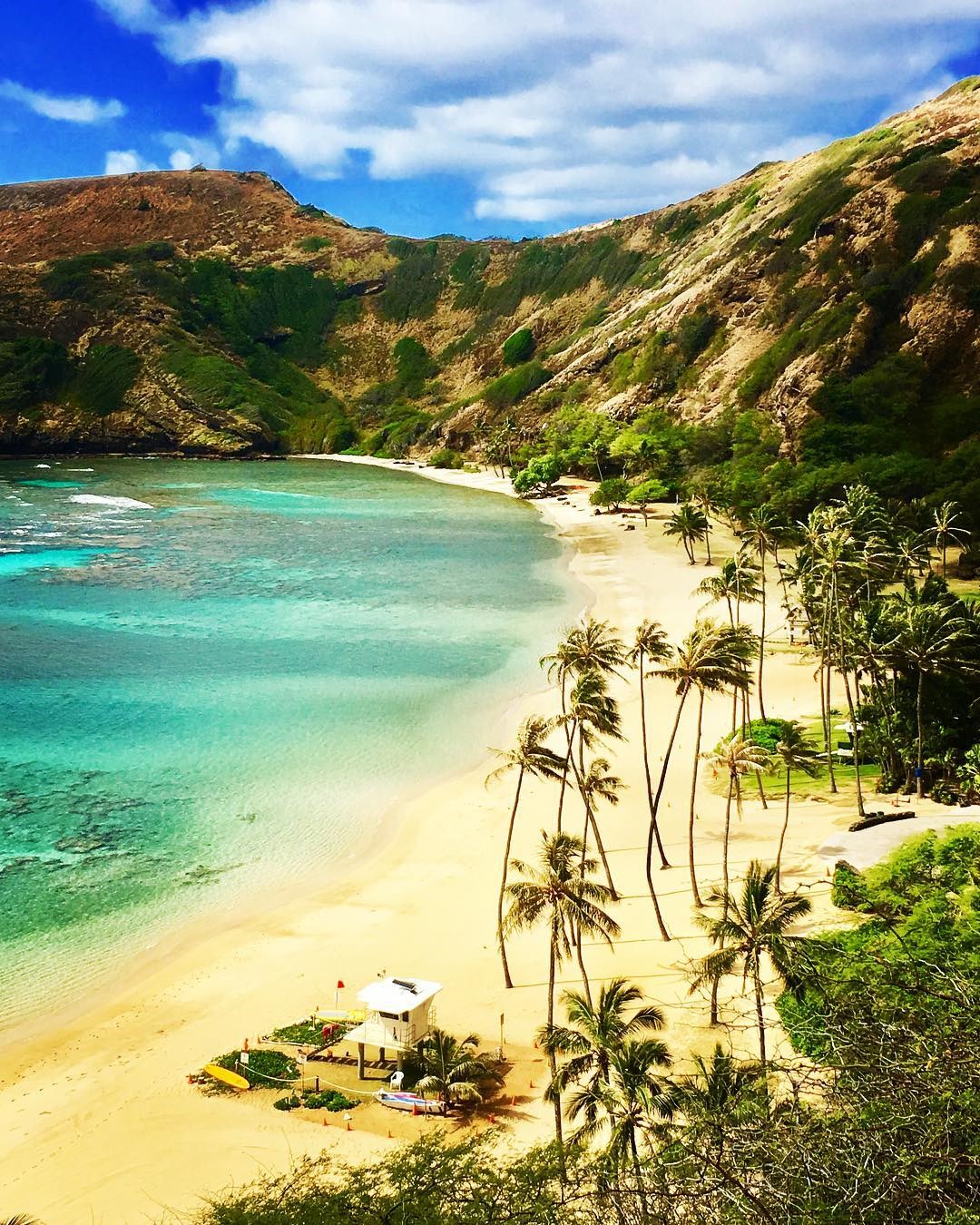 因幾千年前的火山爆發,而由火山口變成如今美麗的半月彎海攤,一旁隆起的小山就像一隻恐龍而得名,清澈的海水、夢幻珊瑚礁、多達400種魚類,讓這裡成為美國十大海灘第一名,在這能享受浮潛的樂趣。