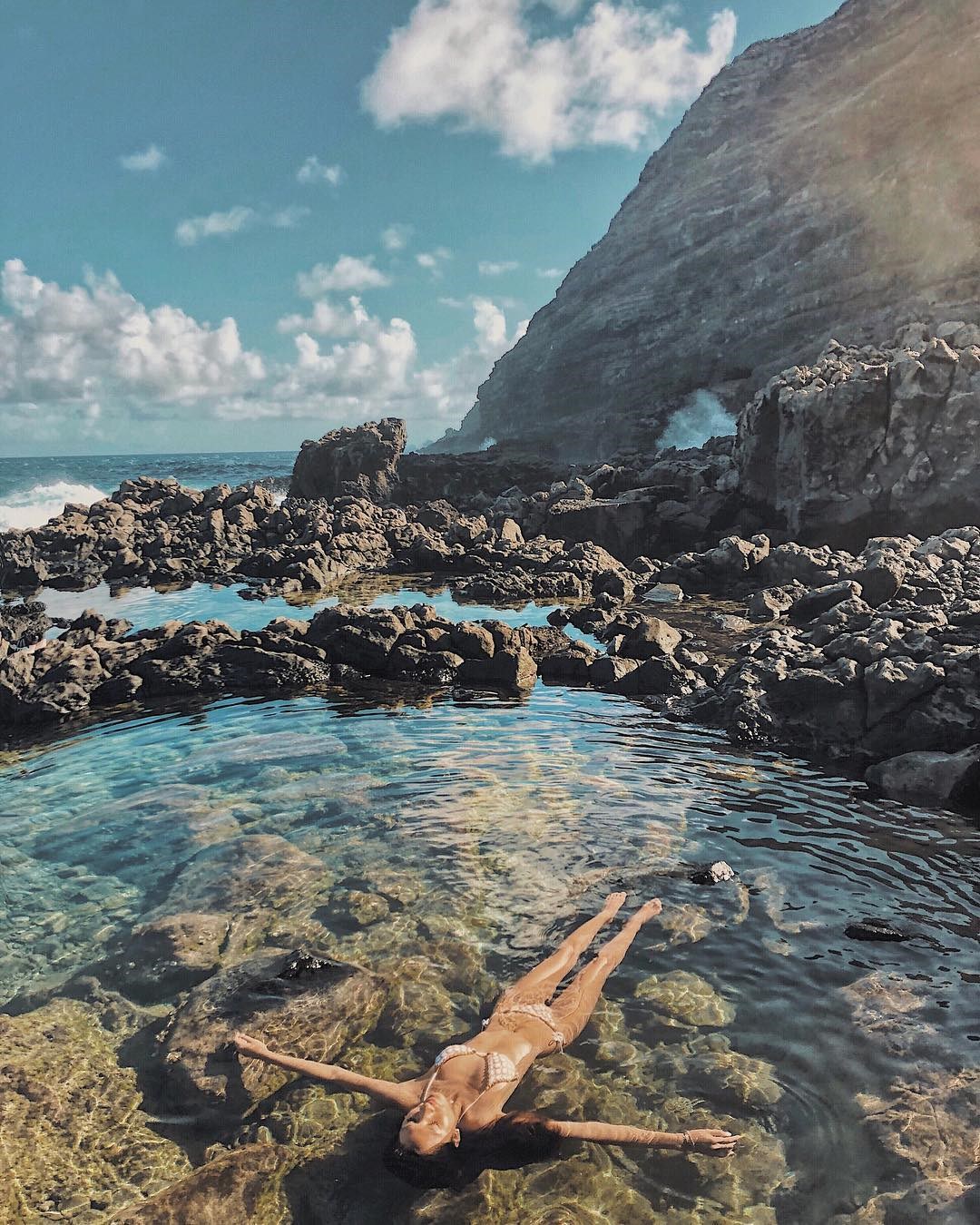 這處屬於夏威夷人的私房景點,天然的泳池分為深水區與淺水區,可以慵懶的泡在冰涼的海水中,感受海浪噴打上來的樂趣,雖然是在海邊,但附近有著天然的屏障擋著,在其中享受悠游的快感。