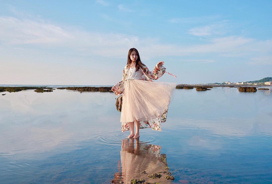 三芝淺水灣擁有彎月形沙灘的海濱美景,有亮白沙岸及覆滿綠藻的藻礁海岸地形,而且距離市區不用1小時的車程,就能享受湛藍的海洋與潔白的雲朵營造的夏季獨有的氣息,是春夏時節最適合前往的休閒勝地,能讓人心情相當愉悅。