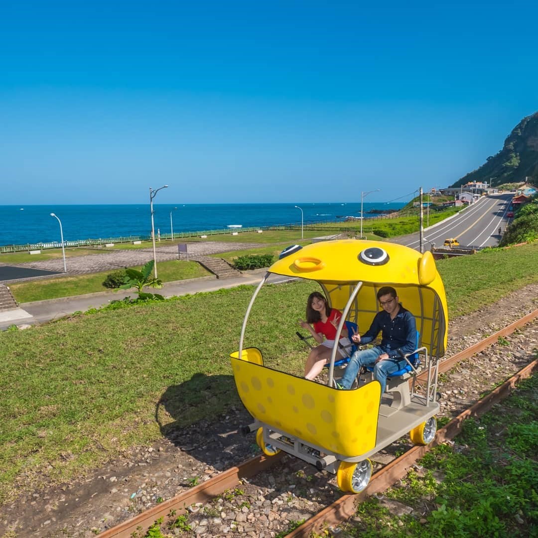 曾被推舉為「臺灣最美海岸支線」深澳線,結合沿岸的蔚藍海景、自然生態、礦坑、與鐵道特色,打造暢遊山海風光的「深澳鐵道自行車」,坐在超萌的彩色河豚自行車裡,沿途欣賞無敵山海景,還能穿越LED光雕隧道,感受不一樣的科技感隧道,讓廢棄鐵軌重獲新生命。