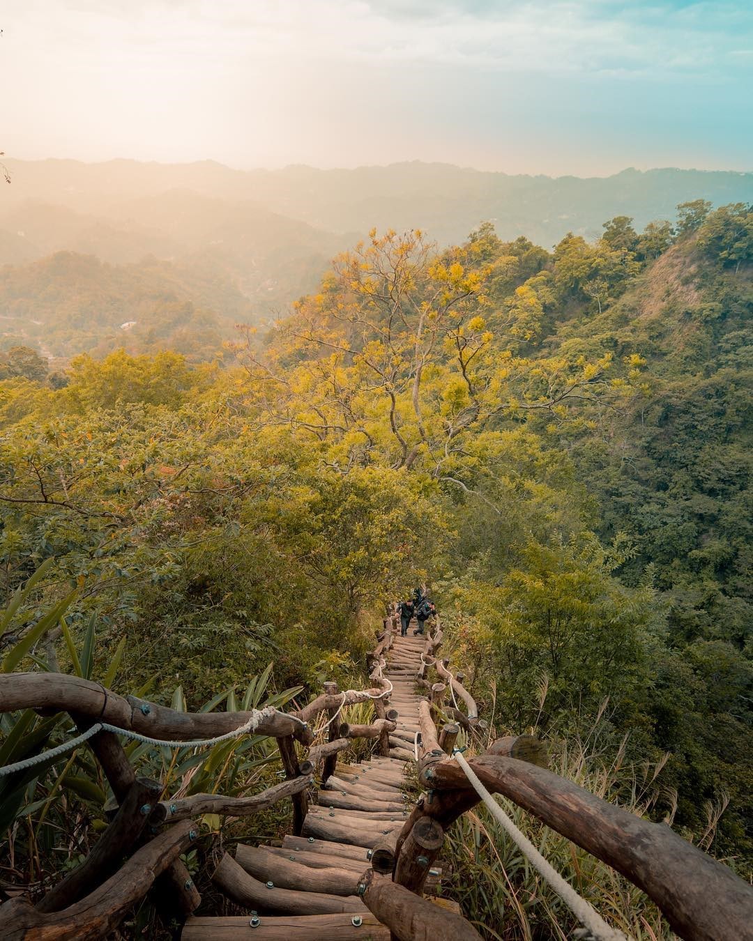 在嘉義阿里山公路上的頂石棹步道群,共有霧之道、茶之道、雲之道、霞之道、櫻之道五條步道,沿途能欣賞到霧色、雲景、霞光與茶園、杉林、竹林的美景,穿越竹林間,有置身在京都嵐山的錯覺。