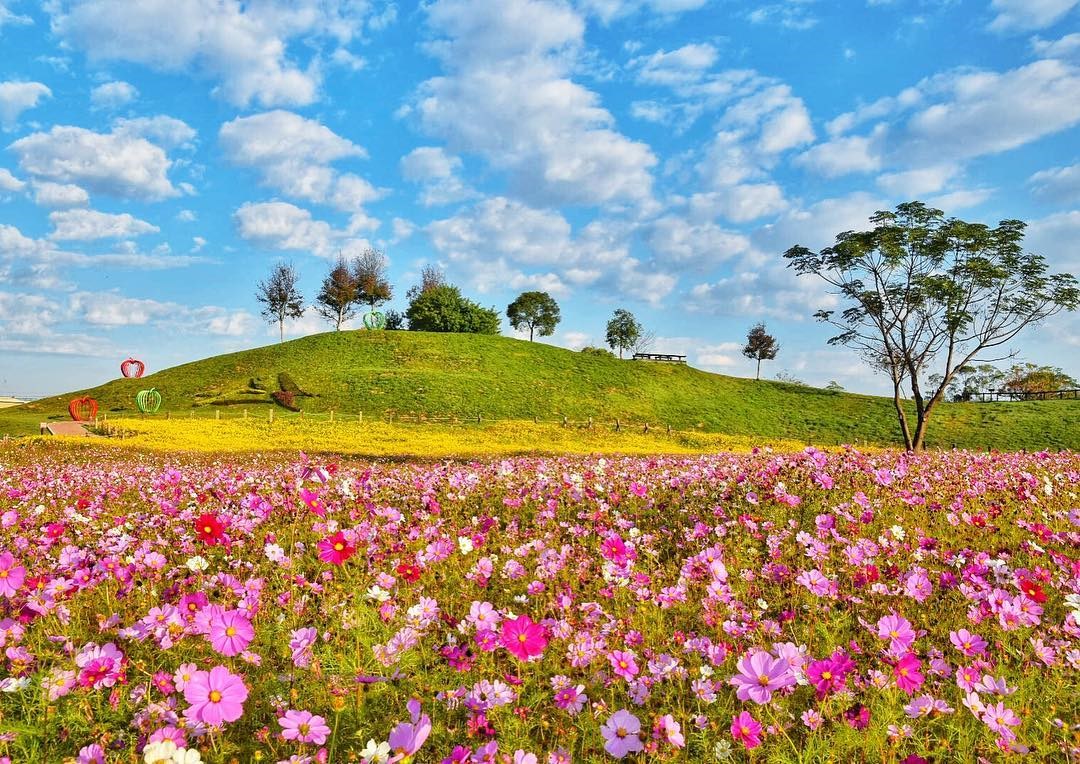 ▲今年初波斯菊花海大受好評,政府也持續配合季節打造夏季花海,讓遊客一年四季都能欣賞到不同花種盛開的美麗花海