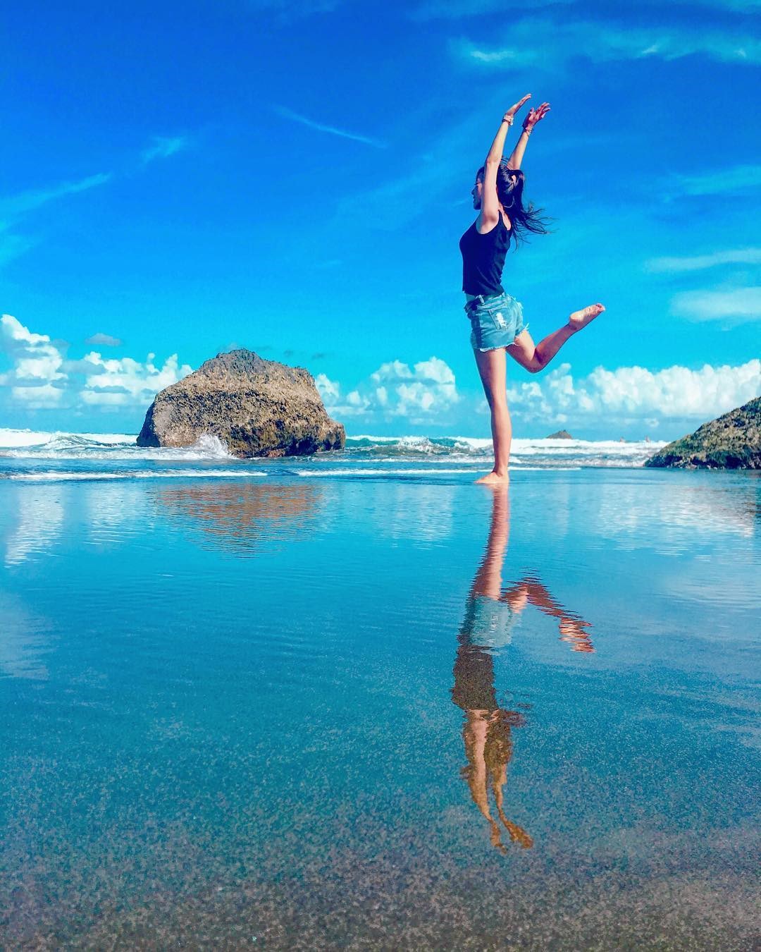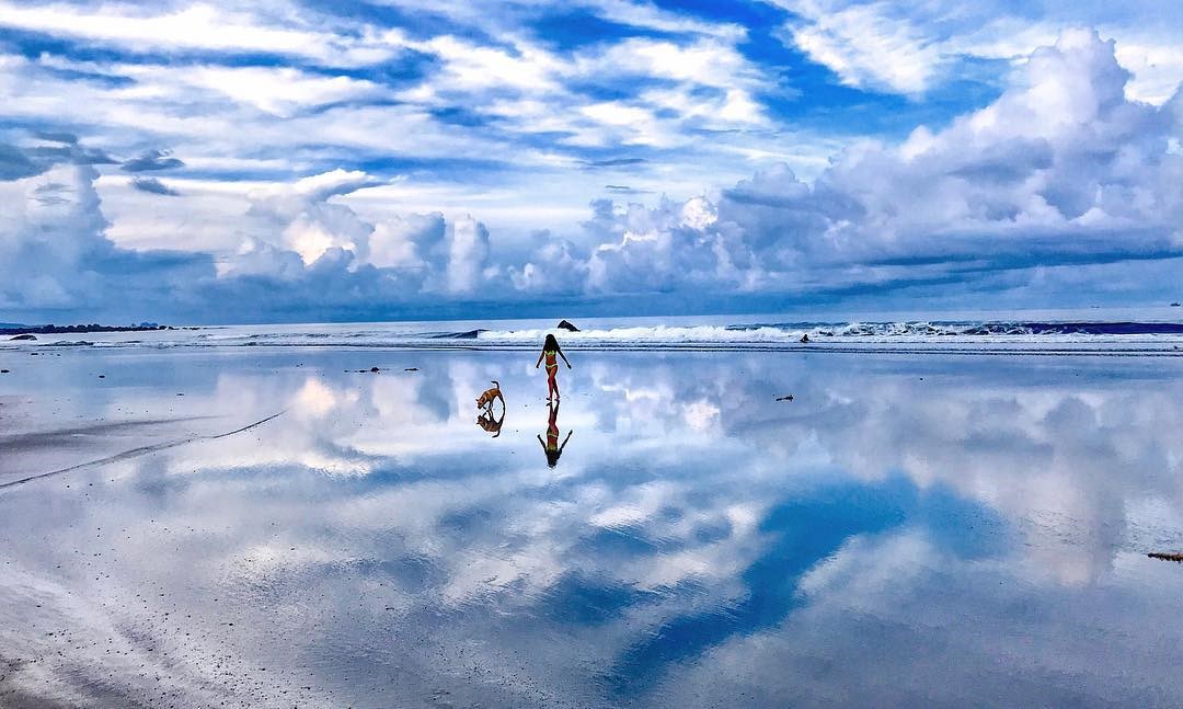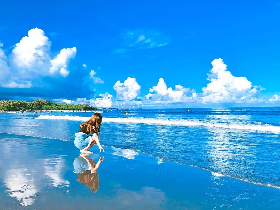 ▲在退潮的淺灘上拍照就能有夢幻的倒影,映襯著藍天,有如一面鏡子