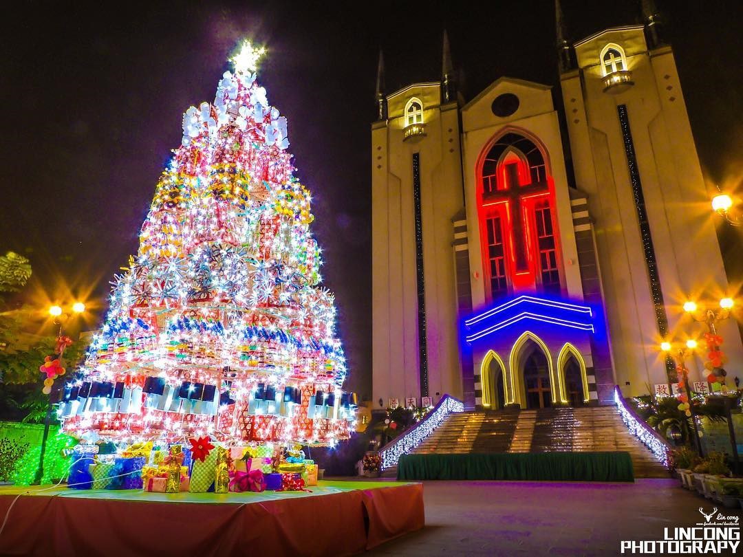 鳳山基督長老教會像是一座歐式古堡,潔白高雅的外觀讓人感受到教堂的磅礡氣勢,不少新人也會到此拍婚紗,每年聖誕打上燈飾更是浪漫無比,今年的聖誕樹使用寶特瓶打造,浪漫之餘兼顧環保。
