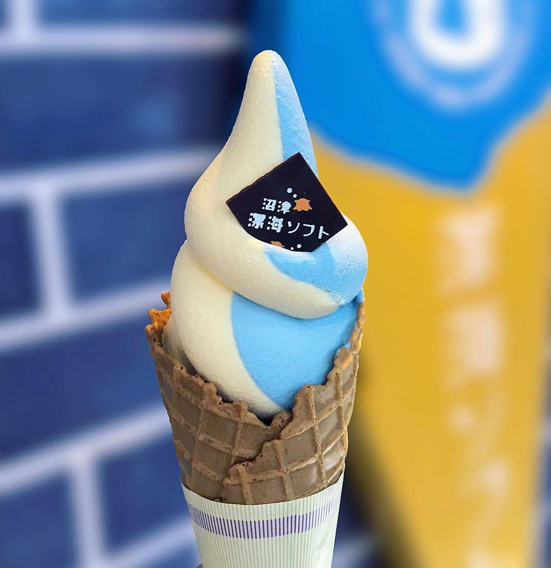 除此之外店內的冰淇淋也相當特別,深海口味是400日元,布丁口味則是350日元,如果真的選不出來推薦大家可以吃混合版只要380日元,就可以一次滿足,夢幻粉藍色冰淇淋拍起照來也很可愛!下次來到靜岡不要只吃抹茶了,也來嚐嚐「沼津深海プリン工房」的超人氣布丁吧!