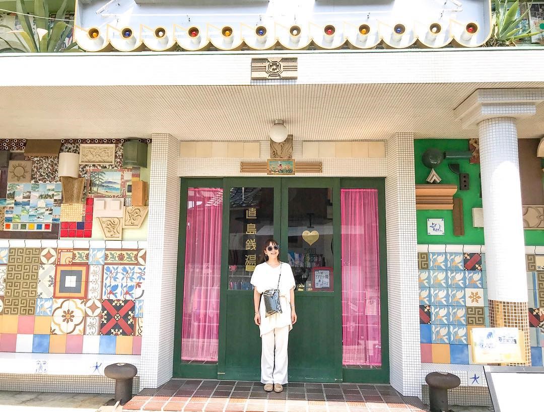 「直島錢湯」是 2010 年第一屆瀨戶內藝術祭的作品。外觀使用許多拼貼, 藝術家大膽使用許多花紋與色彩,錢湯前方還種植著棕梠樹,有種南國的悠閒氛圍融合於異國風的錢湯,在濃厚錢湯文化的日本當地顯得很奇妙,也翻轉了大家對於傳統錢湯的印象。