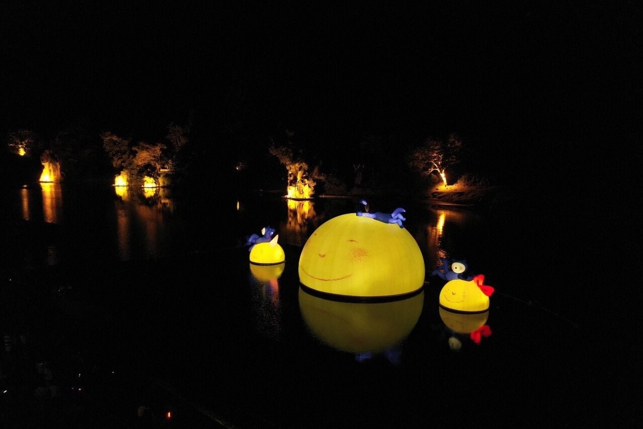 繪本世界真實在現實中登場,邁入20年的「月亮忘記了」,這回將以裝置藝術呈現,從中秋節9月13日開始,一連展至11月13日,為期60天,利用充氣氣球打造3個地景藝術,白天呈現暖黃色,點綴萌萌表情與角色,在湖面上隨著微風搖曳十分生動又可愛。