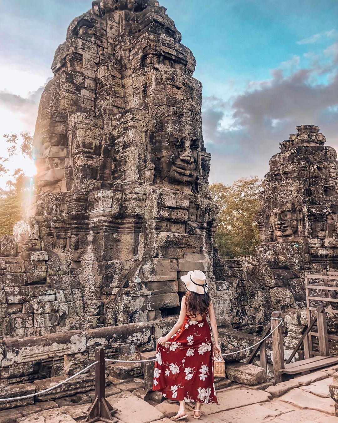 柬埔寨知名的「高棉的微笑」就是巴揚寺,它是吳哥最後的一座國廟,也是唯一的一座大乘佛教國寺,有大大小小的佛像雕刻,不同角度看到的微笑也都不盡相同,曾是金碧輝煌的巴揚寺記錄著高棉當時的繁華,經過歲月的洗禮多了幾分斑駁感,而佛的微笑依然,卻已是完全不同的風情。
