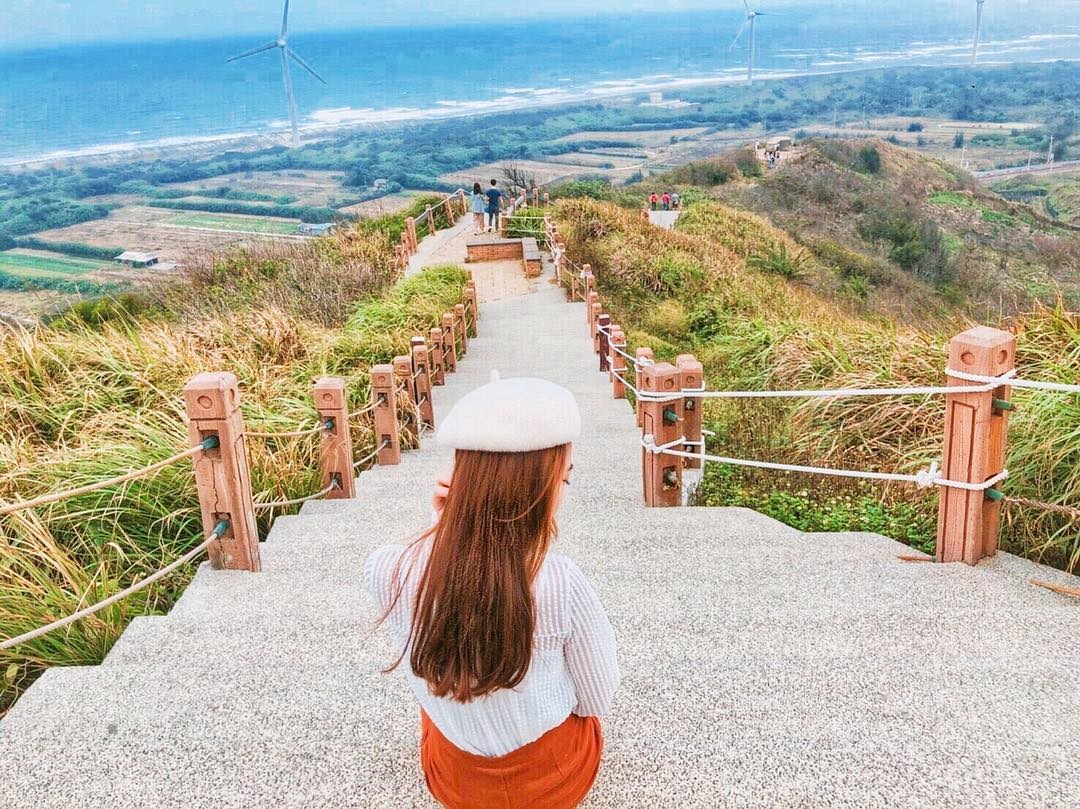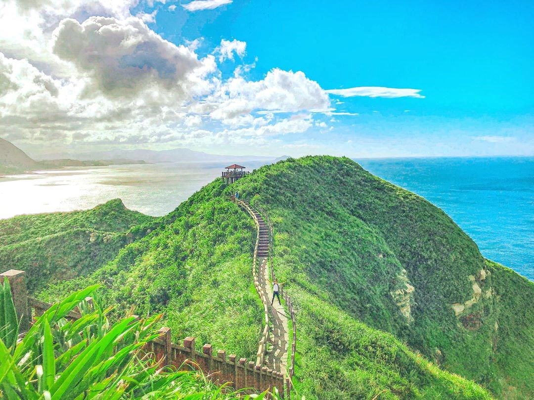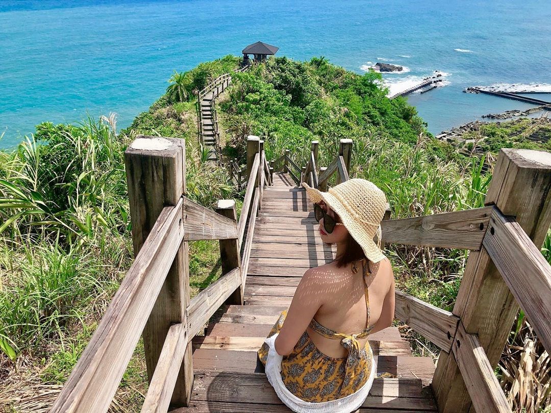 有著台版「萬里長城」的鼻頭角步道,全長約3.5公里,因地形優勢坐擁360度的無敵海景,步道途中有好幾座涼亭,走累了隨時可以停下來休息,坐在涼亭中欣賞水天一色的美景讓人心曠神怡。