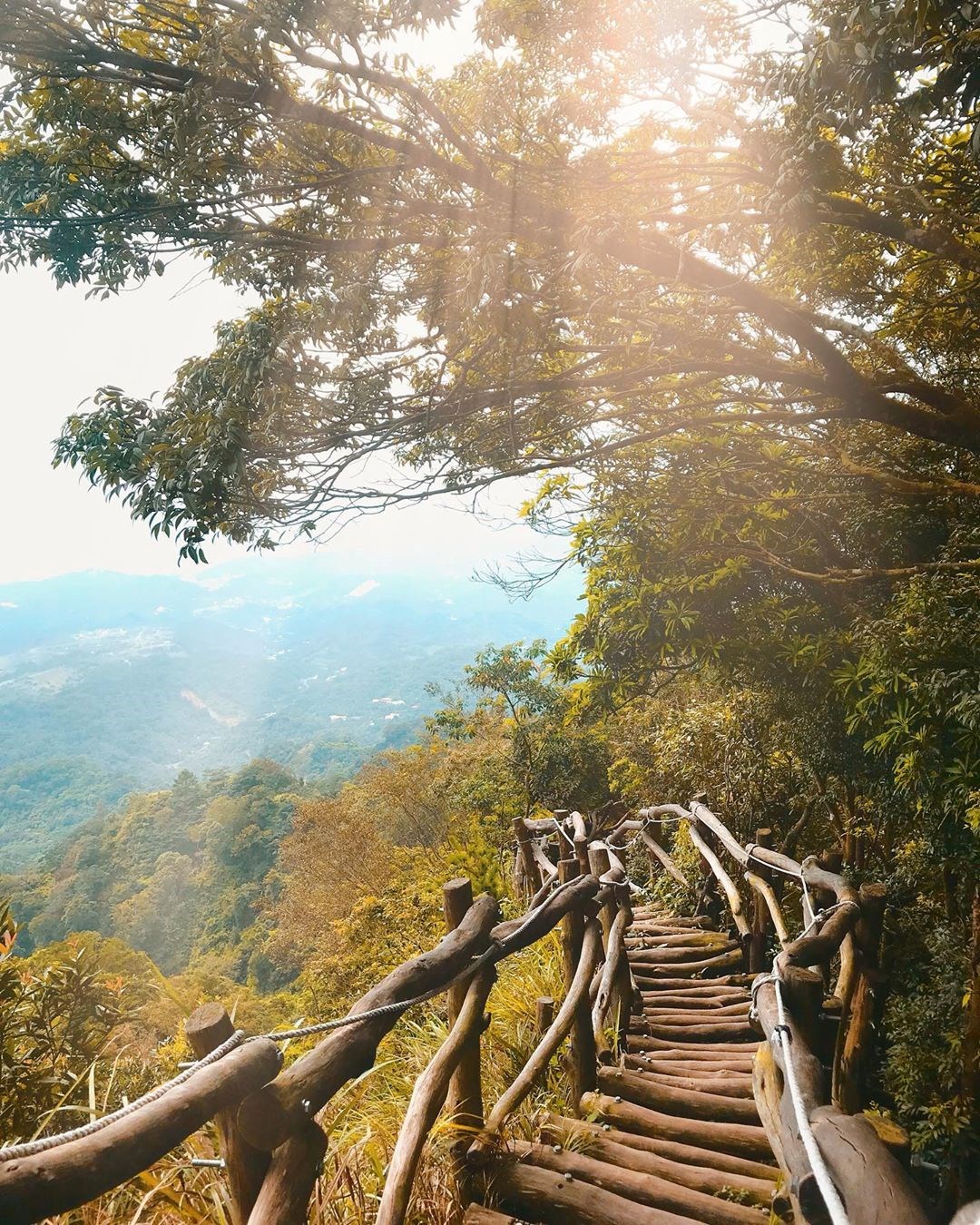 ▲充滿懷舊感的枕木階梯,一邊呼吸著新鮮的空氣,一邊享受微風徐徐吹來,漫步在四號步道上十分愜意