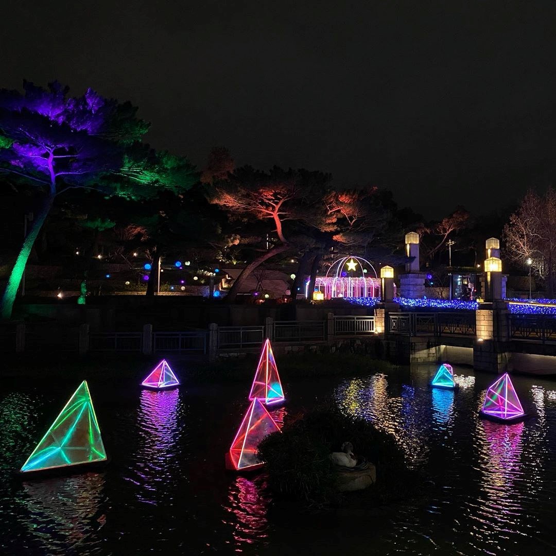 ▼公園裡隨處可見繽紛燈飾,讓夜晚更加迷人
