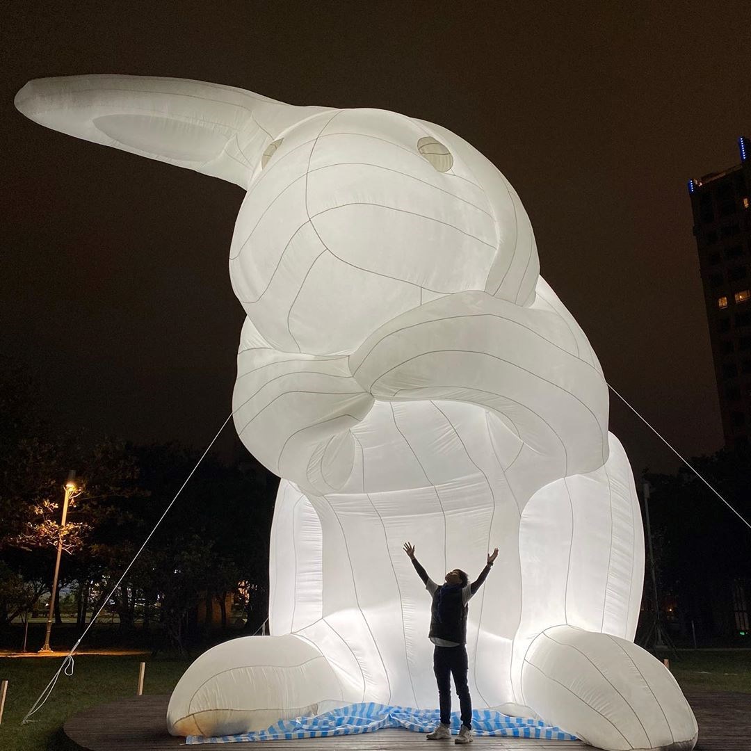 ▼7公尺高的大白兔每隻動作各不相同