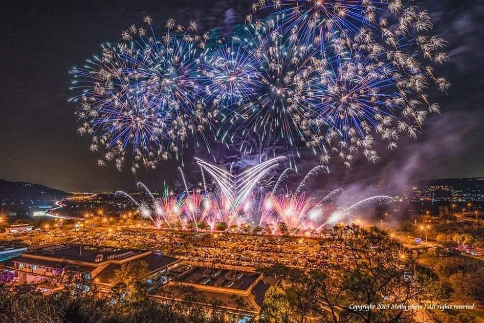 ▼每年煙火秀都會涵蓋整座南投服務區上空,範圍之廣特別壯觀
