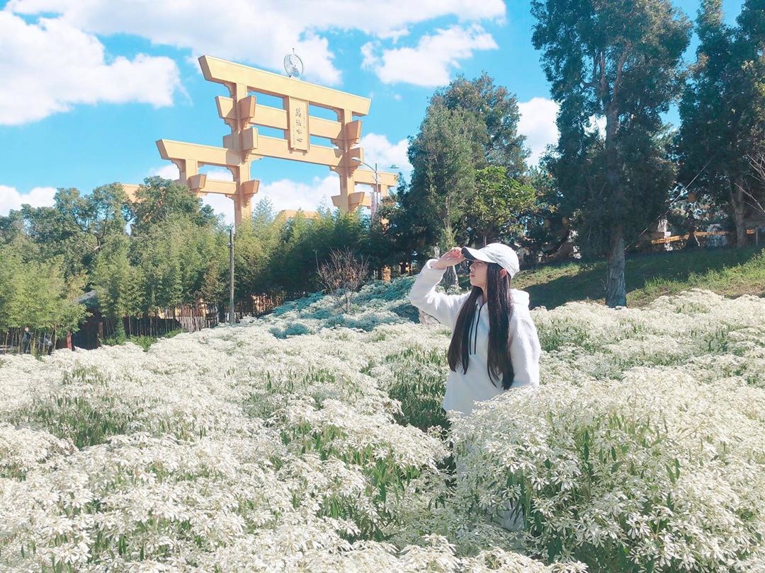 每年在耶誕節前夕,正是盛開期的白雪木,讓校園裡的小坡上,原本翠綠的植栽現在彷彿鋪上了一層白雪般,整片快比人高的白雪木,加上後方的金色南天門,特殊的構圖也讓這片景點成為南投人的隱藏秘境。