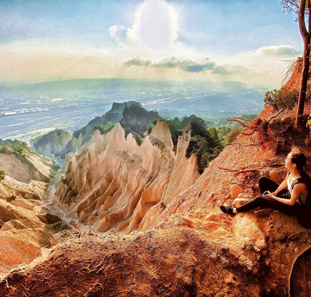 拿下1萬6千多票、在百座步道中排名第一的火炎山步道,海拔高度約600公尺,因為惡地地形,露出紅色的土堆,將山刻畫成銳利畫面,形成少見的奇特景觀,站在火炎山上視野遼闊,可俯瞰大安溪與鋸齒狀山峰,讓這裡有著「台版大峽谷」之稱。