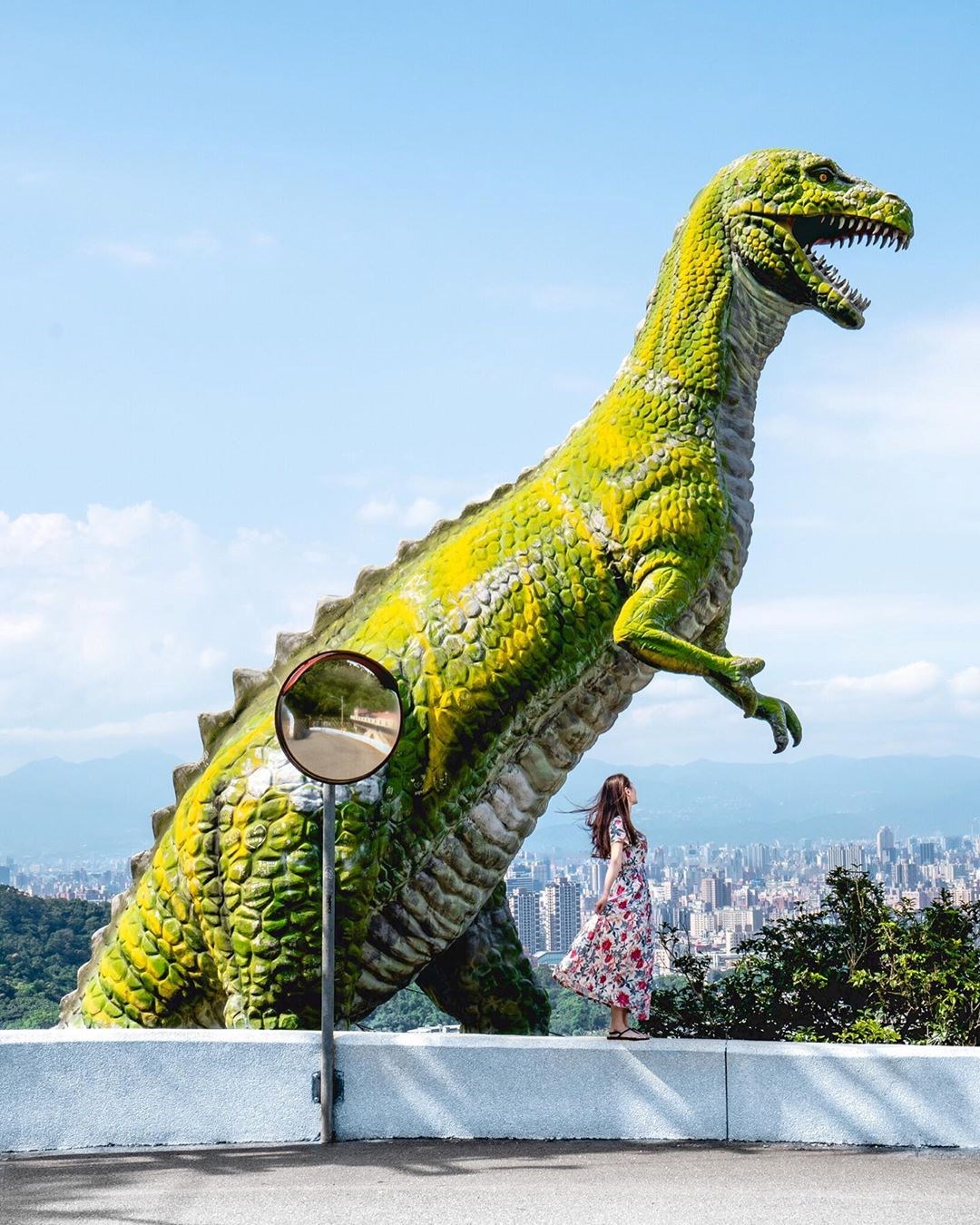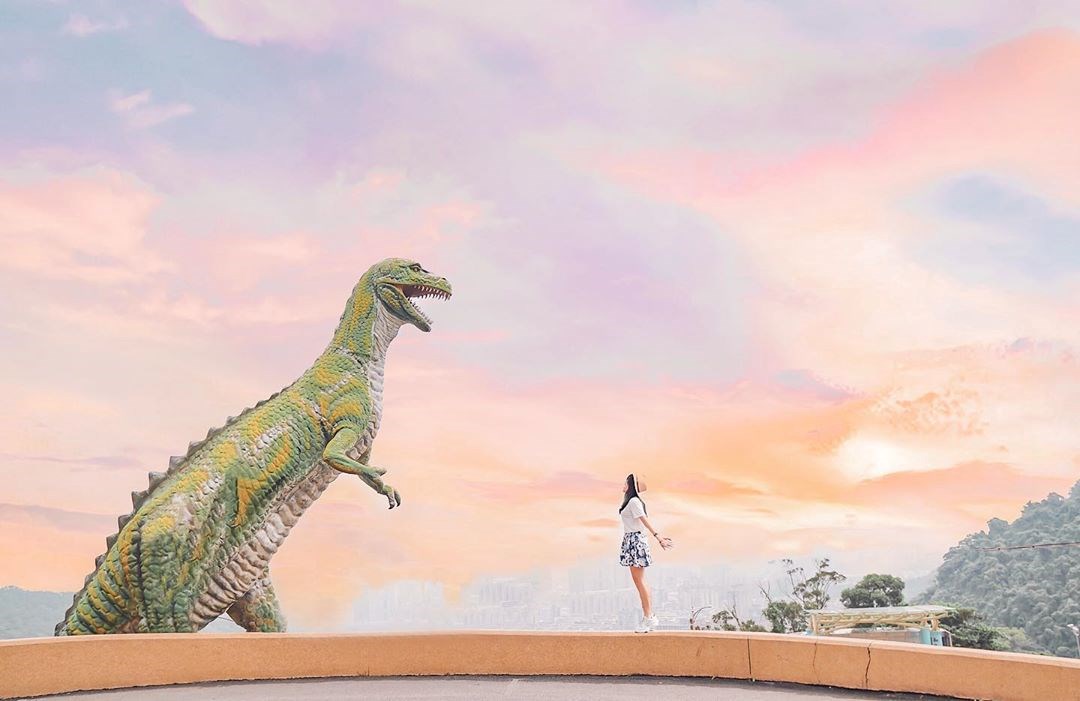 俗稱為「烘爐地」的南山福德宮,坐擁地裡位置優勢,可將大台北、觀音、大屯火山群及淡水地區的風景一覽無遺,除此之外廟方更在園區裡裝置了6隻恐龍模型,山腰上還有高達109米的土地公神像,不管是帶著長輩來踏青還是溜小孩都相當適合。