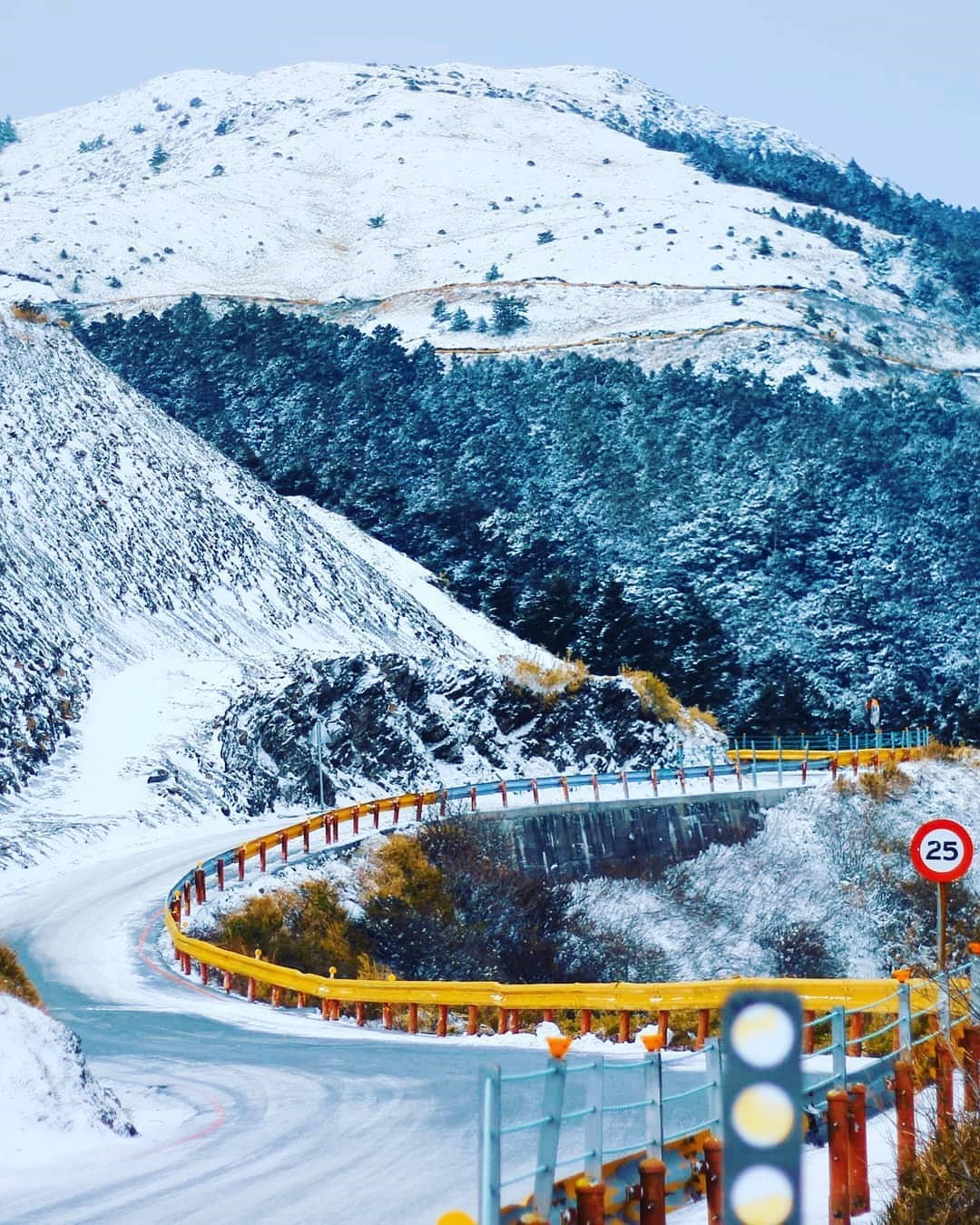 ▼雪雖停了,但氣溫仍低,能瞧見白雪覆蓋在山壁上