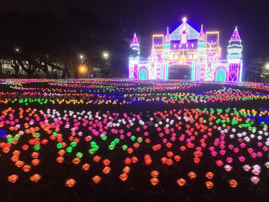 ▲上萬朵LED燈製程的美麗花海,和光雕城堡真是太夢幻啦!