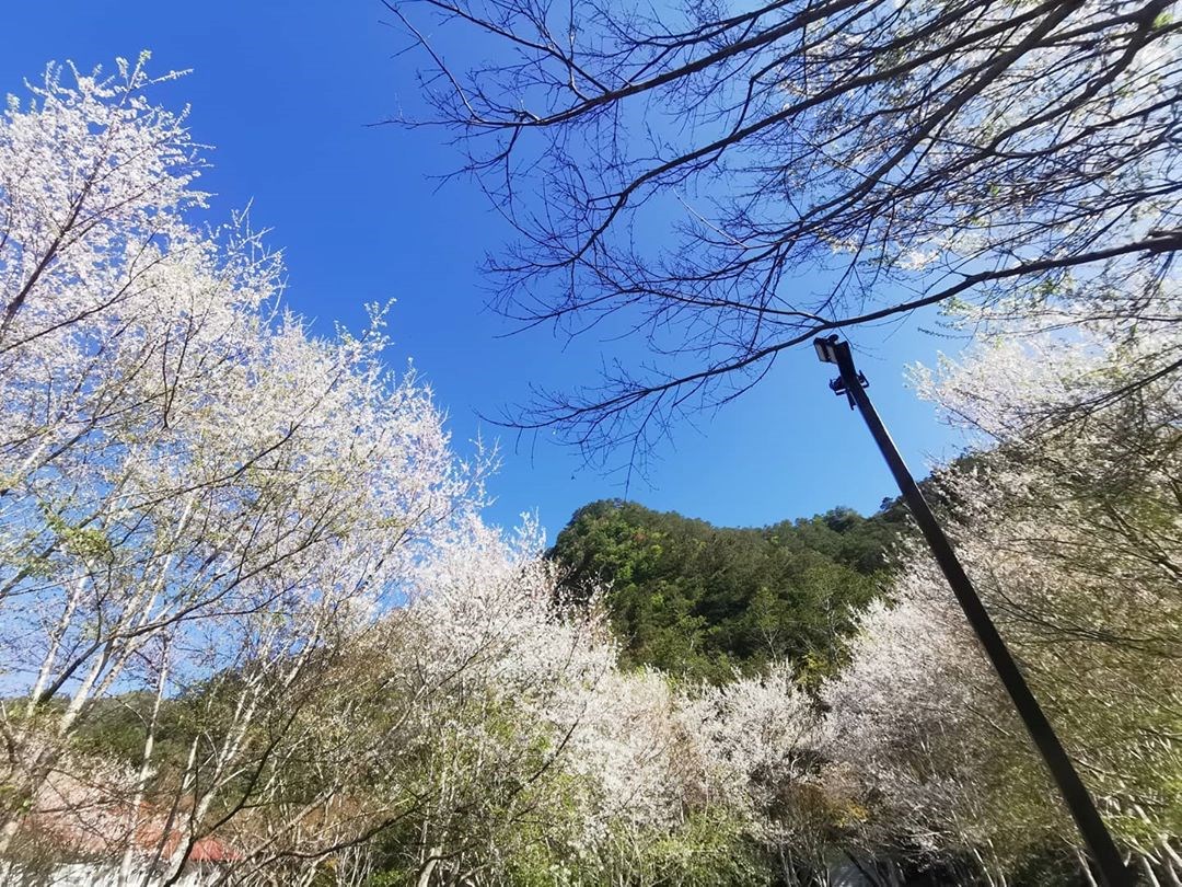 目前花開約5成左右,若天氣狀況良好,預估三月底時會全數盛開,粉絲們可以稍稍期待白櫻花大爆炸的壯觀場景,快約上姐妹們走起,週末假期上山賞花踏青拍美照吧!