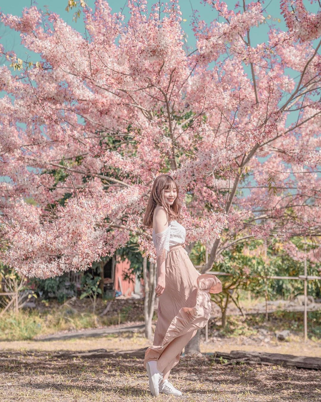 isahuihui7粉紅花海還沒完!今年全台各地櫻花從一月起就大盛開,但進入四月,這株開更美,有著「平地櫻花」、「泰國櫻花」之稱的花旗木,滿樹的桃紅粉白花朵讓人少女心大發,最近位在台南「龜丹休閒體驗農園」裡的40多顆花旗木大盛開,而且花枝特別低,夢幻指數百分百!