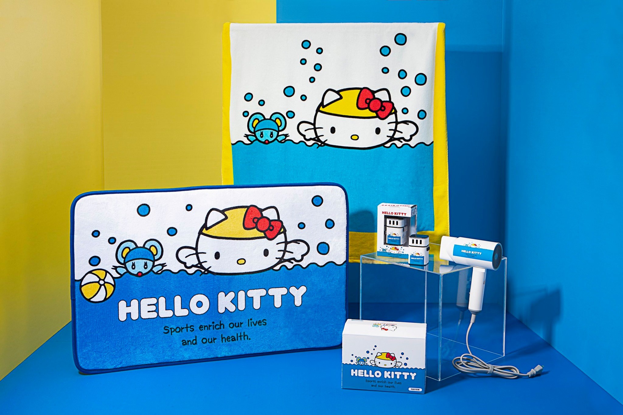 「Hello Kitty Go Sports」大大的經典蝴蝶結HELLO KITTY,搭上充滿夏天意象的水藍色與充滿活力的運動風,不管是止滑腳踏墊、超大浴巾或是USB電源供應器萬國轉接頭、吹風機,通通有,佈置在家裡真是超級療癒,另外還有超萌吐司盤、防水野餐墊等就算不出門和KITTY整天待在家也很可以呀!
