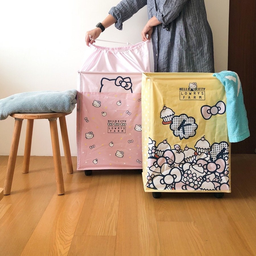 HELLO KITTY x LOWRYSFARM結合的滾輪收納籃,防潑水表布、提把設計、滑輪、棉布束口,不怕水又防塵,重點顏色太萌拉~集滿6點+399元可兌換一款,限量共2萬個,可挑款。