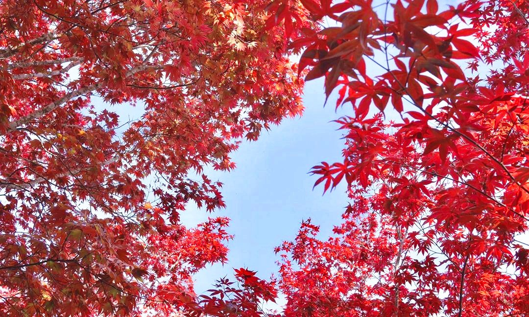 「紫葉槭」和常見的「秋楓」不同,通常都是從每年的4月開始陸續綻放,楓期相當長,若天氣狀況允許到9月分左右都可以賞,9月之後進入落葉期,步道被火紅的葉片鋪滿的場景也別有一番風味。