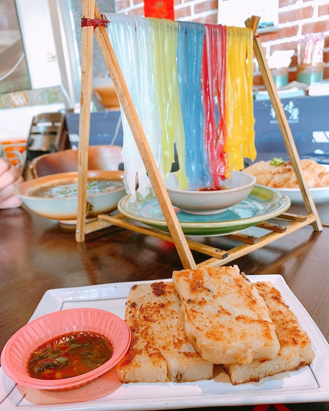 身為客家庄的美濃,板條可是來到這裡一定不能錯過的美食之一,位在中山路上有一家每天只營業4小時的「軒味屋彩色粄條」,採用天然的五種蔬果製成彩色的粄條,搭上花生碎粒的酸甜沾醬,絕對顛覆對客家粄條的印象,視覺與味蕾都是一大享受,還有手工製做的蘿蔔糕也都是必嚐招牌之一呀!