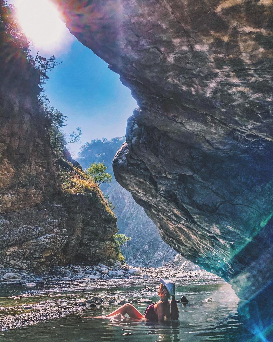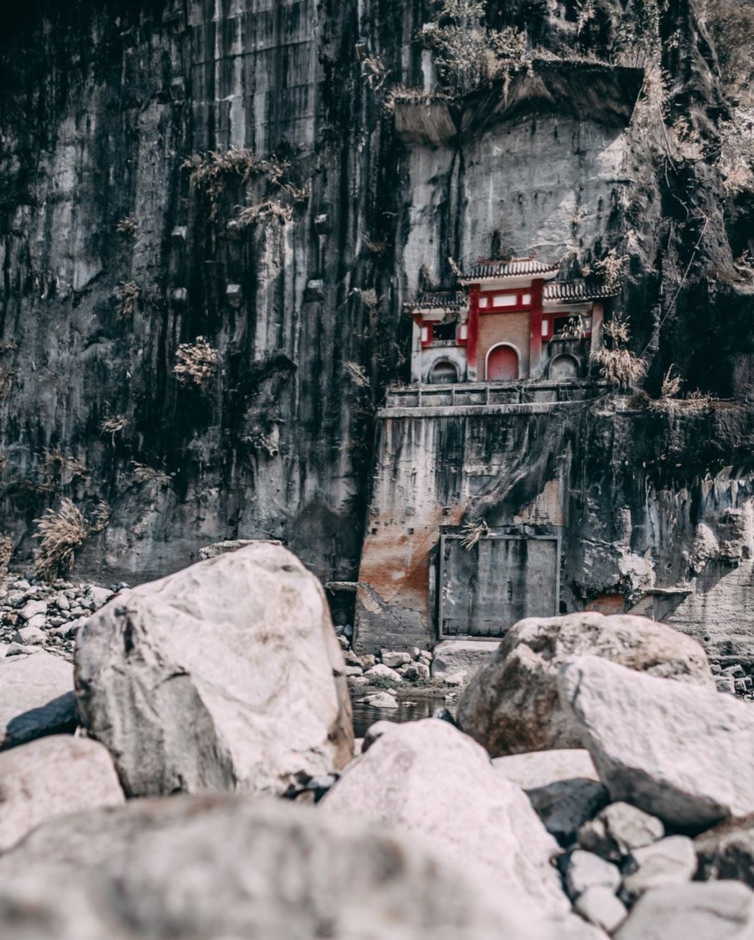 絕美溪谷中,整個河床全是大理石,其中最著名的就是崖壁上的谷關電廠吊橋,仿中式道觀的遺跡,經過歲月的沖刷及大自然的洗滌,天災後神似古蹟一般的山壁紅廟,彷彿宮崎駿電影的場景一般,坐落大理石奇境的懷抱中,有種滄桑的美感。