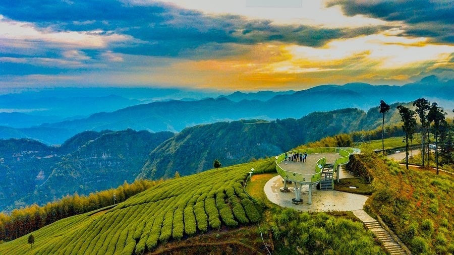 ▼視野極佳的雲嶺之丘,能同時瞧見茶園梯田與雲海交織的景色