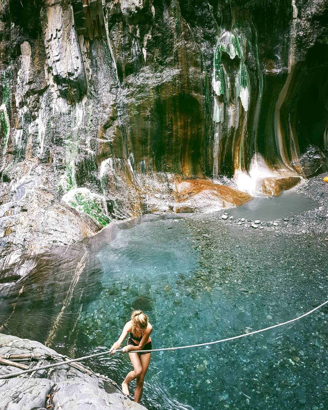 「栗松溫泉」海拔高達1075公尺,這裡因為礦物結晶和翠綠溫泉藻形成特殊的色彩,宛如隱世仙境,不過想到仙境泡溫泉,必須經過登山、溯溪通過陡峭的山路才能抵達,相當具有挑戰性,也是不少登山愛好者必挑戰名單。