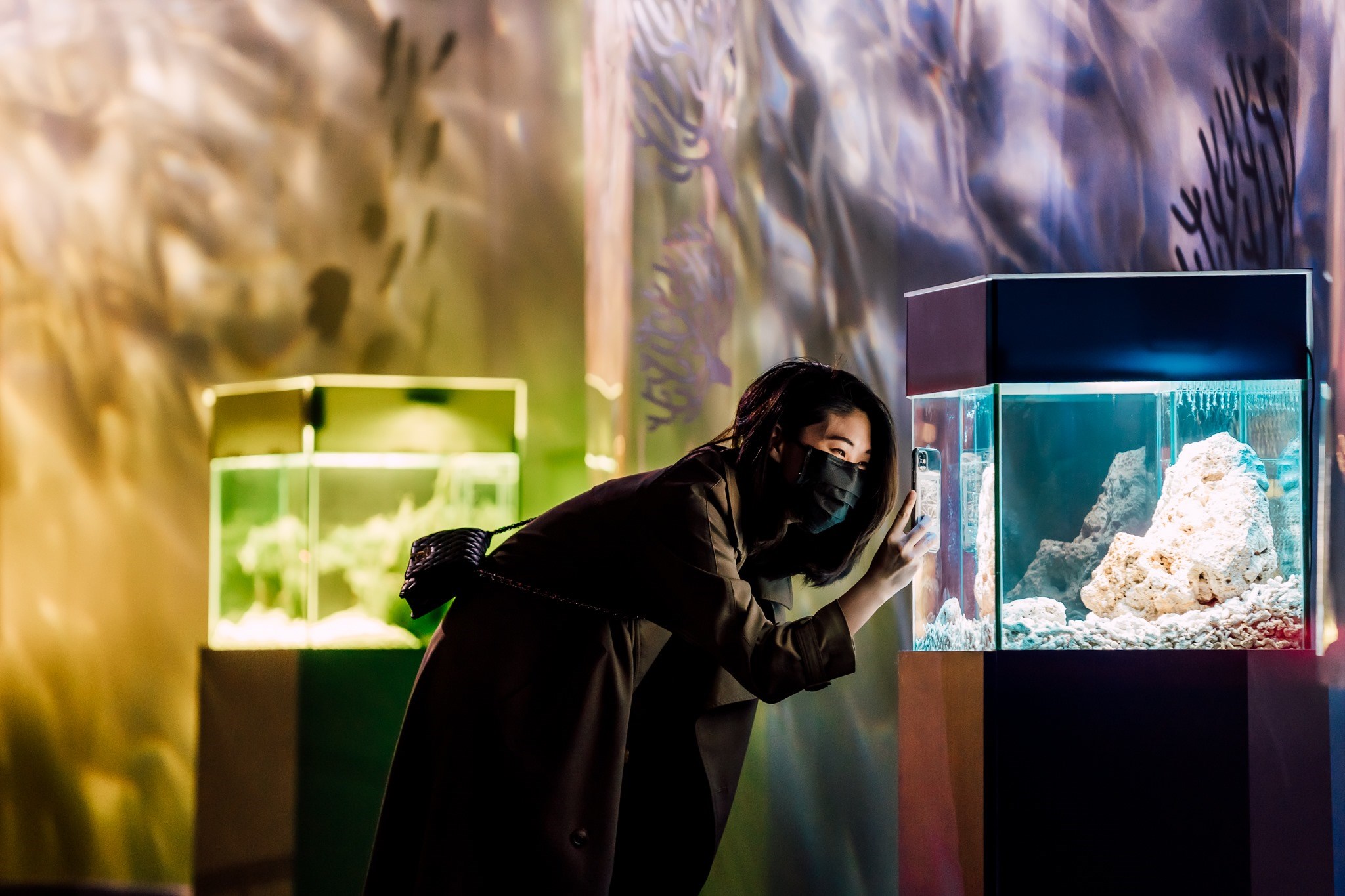 七彩主題的「海洋本色」,有俗稱火焰貝的「電光紅」粗面弧蛤、身著「麒麟綠」的變色連鰭䲗、雄性專屬粉色系的「紳士粉」側帶擬花鮨、瞬息萬變體色「百變灰」的呆萌烏賊寶寶,還有電影明星之一的「皇家橘」小丑魚等,感受來自大海的繽紛色彩,還能順便找出自己的專屬代表色,留下一張張美拍照。