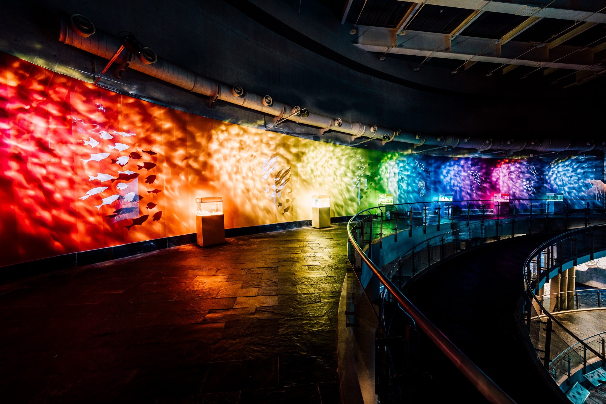 繼超壯觀的「海藻森林」後,屏東海生館新美拍景點又多一處啦!在今年除了能體驗全台唯一的「企鵝餵食」外,全新亮相的「色水廊道」更是美拍大升級,以7種不同鮮豔色系的海洋生物作為「海洋本色」主題,打造34公尺長的波光主展區,七彩繽紛夢幻呈現另一種海洋之美~
