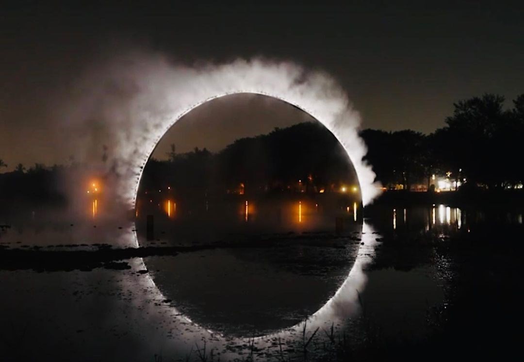 ▼《Arc Zero Eclipse 弧零:月食》藝術裝置,中空的半圓形主題裝設霧化器,搭配水景空間,如夢似幻相當有意境/衛武營展區