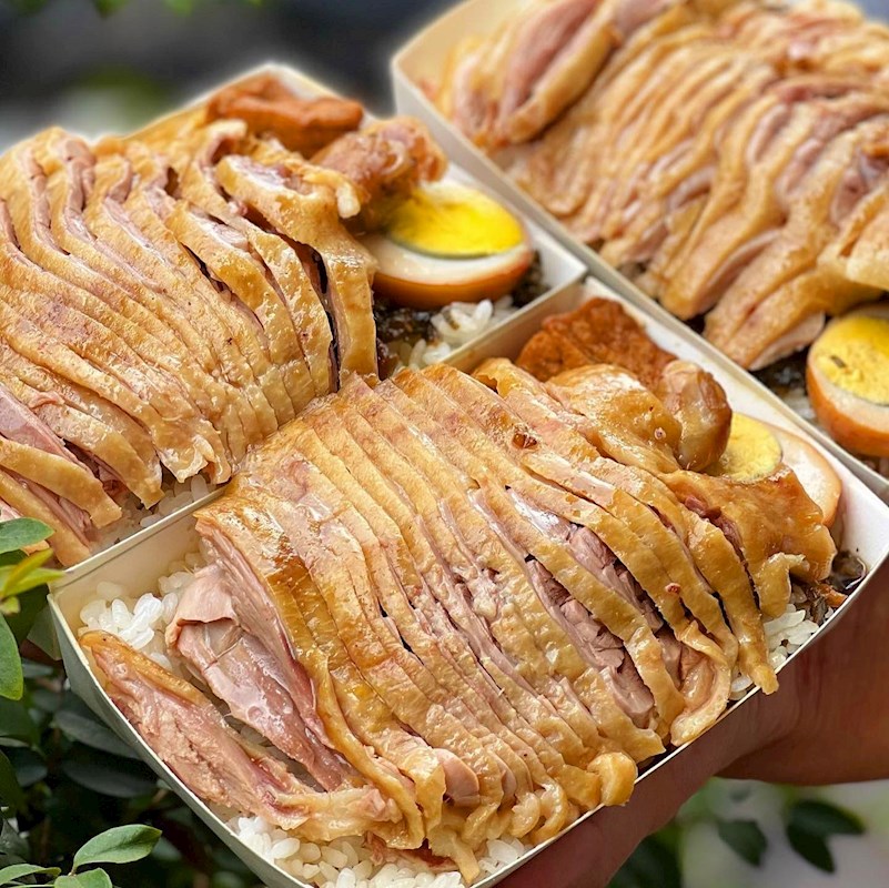 招牌「鴨腿飯」滿滿的鴨肉鋪蓋在香Q米飯上,鹹香的醬汁淋上,鴨肉散發出油亮的光芒,一端上桌就令人食指大動,鴨肉的肉質柔嫩不會乾柴,老闆還在一旁放上梅干(配菜可能不定時作更換),搭配起來更添風味,滿滿一大盒只賣$100元(價格為2022年/4月最新價),一張百元就能吃到超滿足。