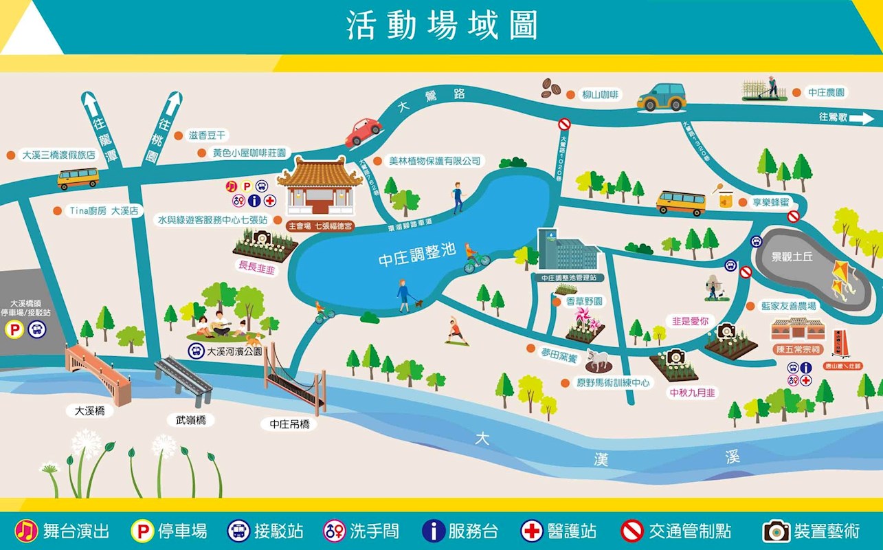 ※七張福德宮停車場不開放大型車進入,請大型車(40人以上巴士)停至大溪橋頭停車場