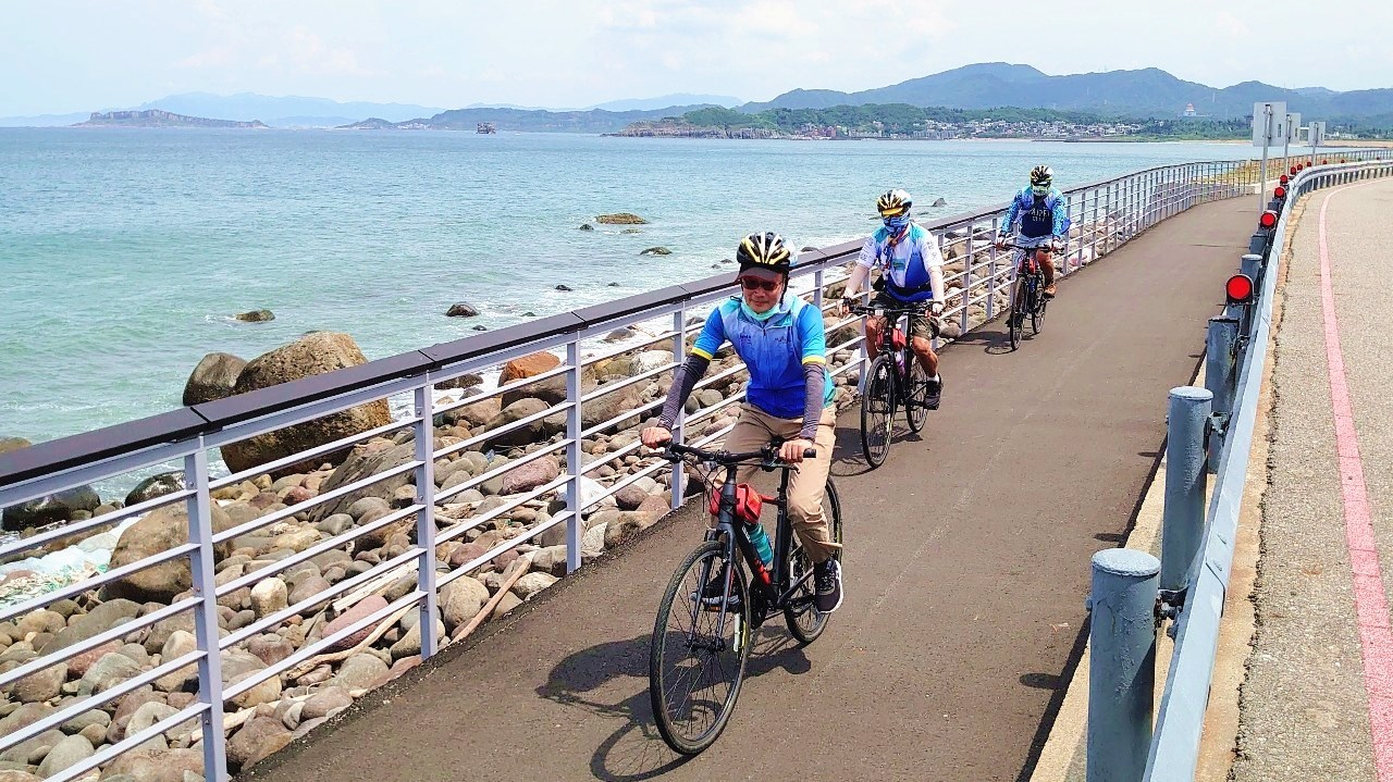 由北觀處所推出的「2022極北點-富貴角燈塔騎遊」活動,全長約45公里,是一條相對平緩而長的路線,去程從白沙灣遊客中心出發,目的地為中角國際衝浪基地,一路上依山面海、地勢開闊而平坦,在靠近金山時,還會轉往萬金自行車道,欣賞海岸及田園美景,一趟約22公里的路程,會在1小時半左右騎乘完畢,即可稍作休息,補充體力。