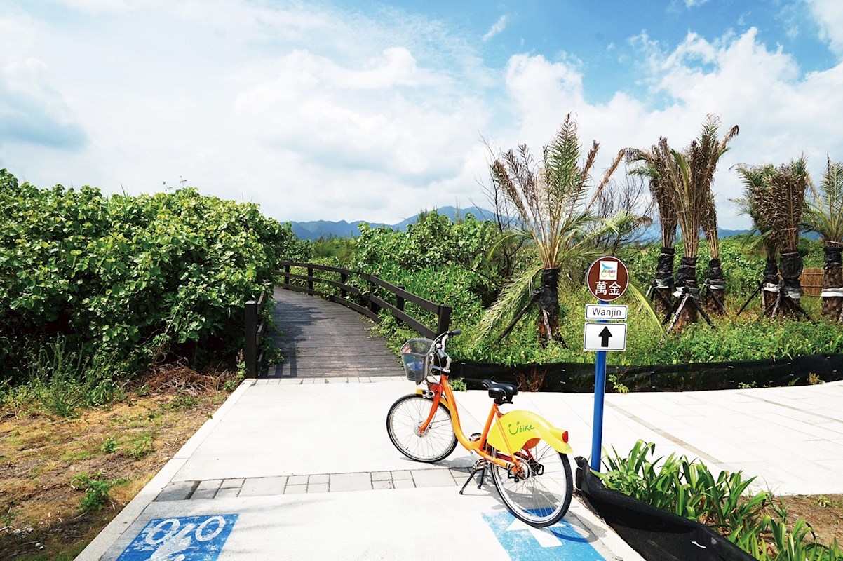 ▼「萬金自行車道」全長約15公里,是北海岸4條自行車道裡最長的一條,一路沿著海岸及田園,綠樹成蔭
