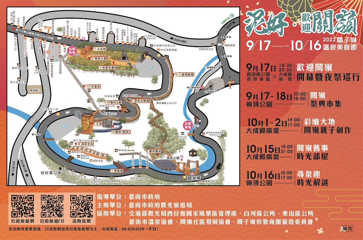 地點:台南市白河區28-3號(關子嶺大成殿廣場&延伸周邊嶺頂公園、寶泉橋公園、火王爺廟)