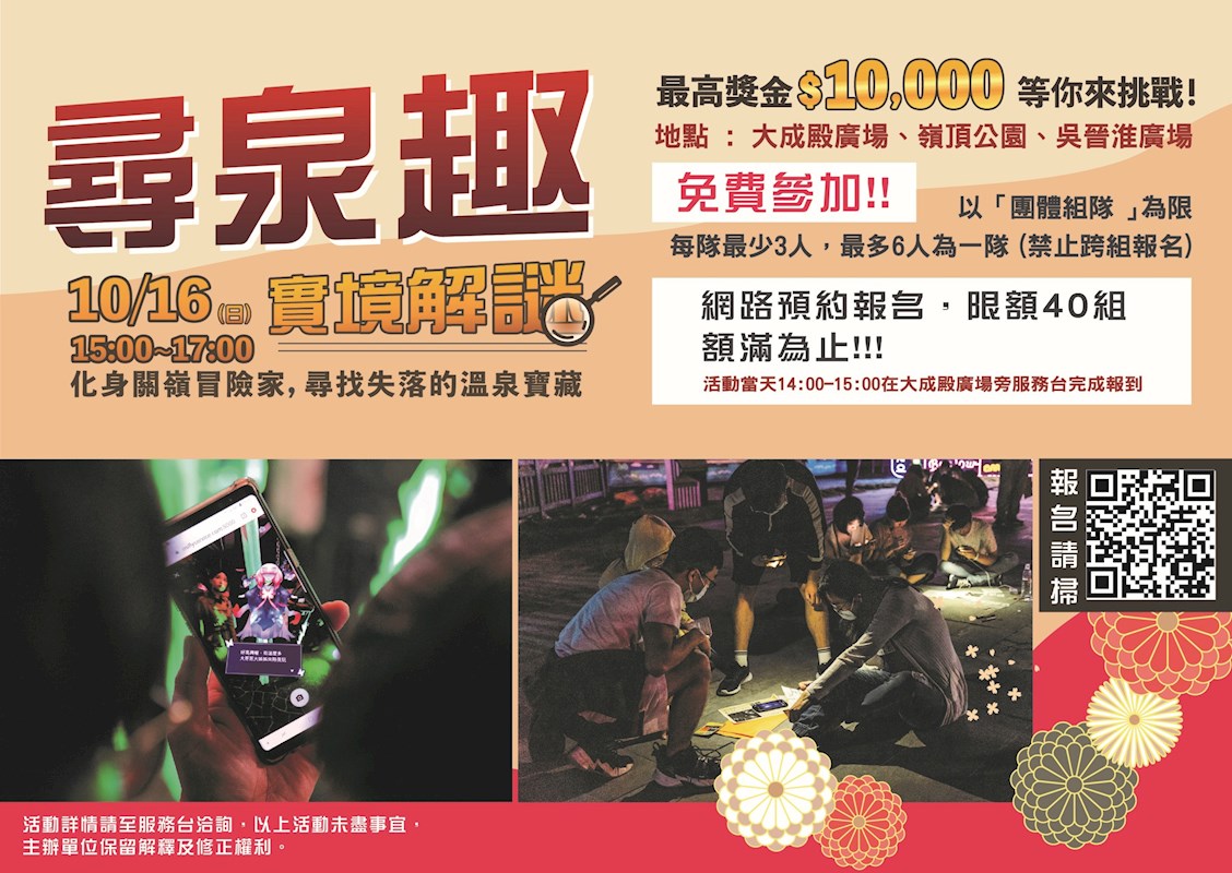 ▼10月16日「尋泉趣」實境解謎為預約制,可事先透過線上報名參加-活動報名傳送門