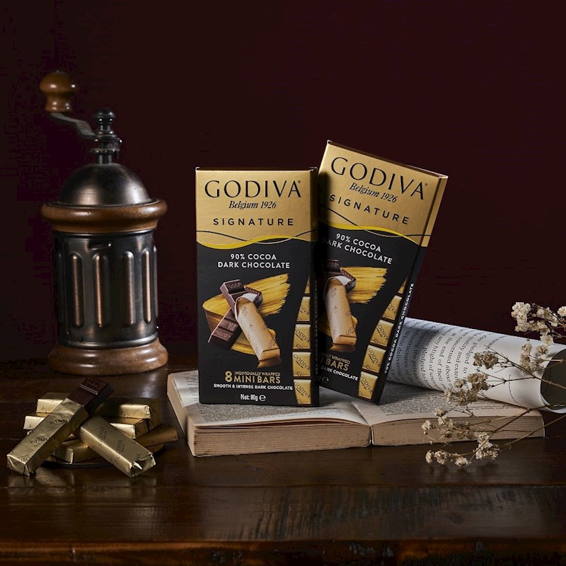 除此之外,一推出就全數售罄、擁有超高人氣的醇享系列90%黑巧克力也強勢回歸!90%黑巧克力結合GODIVA百年精湛巧克力製作工法與嚴選頂級可可,完美帶出高濃度巧克力的純粹、特有香氣與溫潤質感,入口微苦,尾韻回甘的味蕾感受,不僅帶來深摯的味蕾體驗,更讓人意猶未盡!
